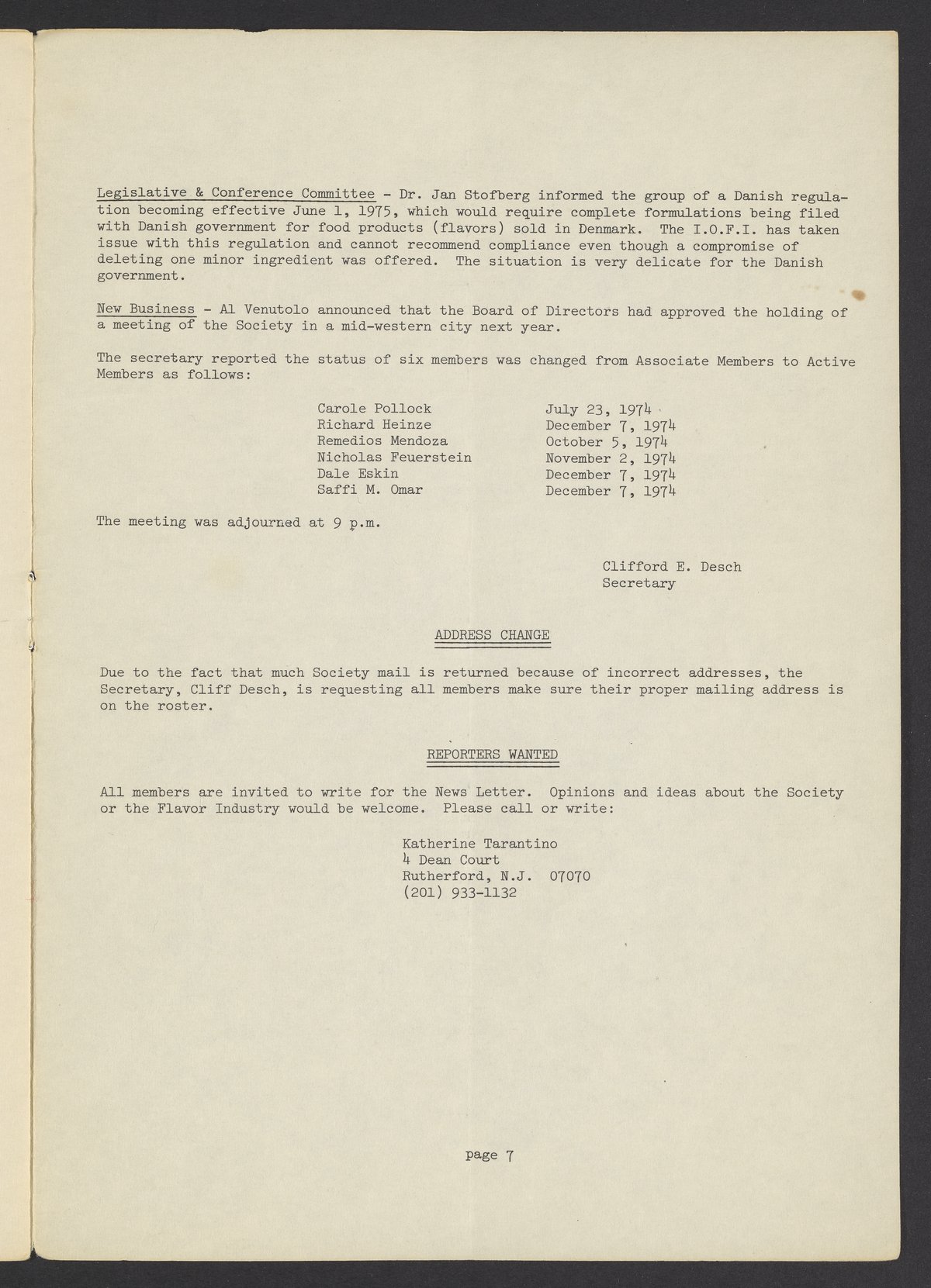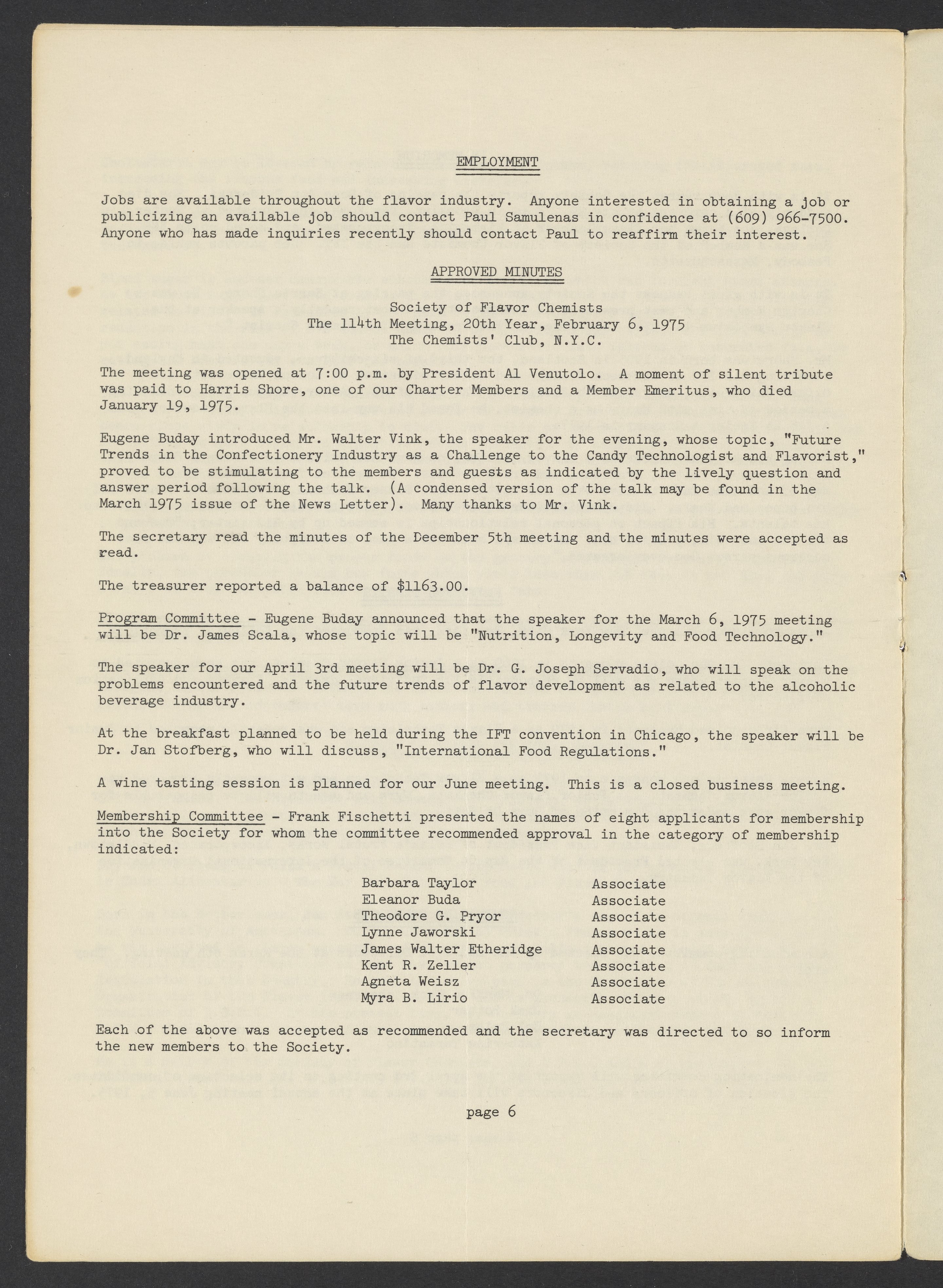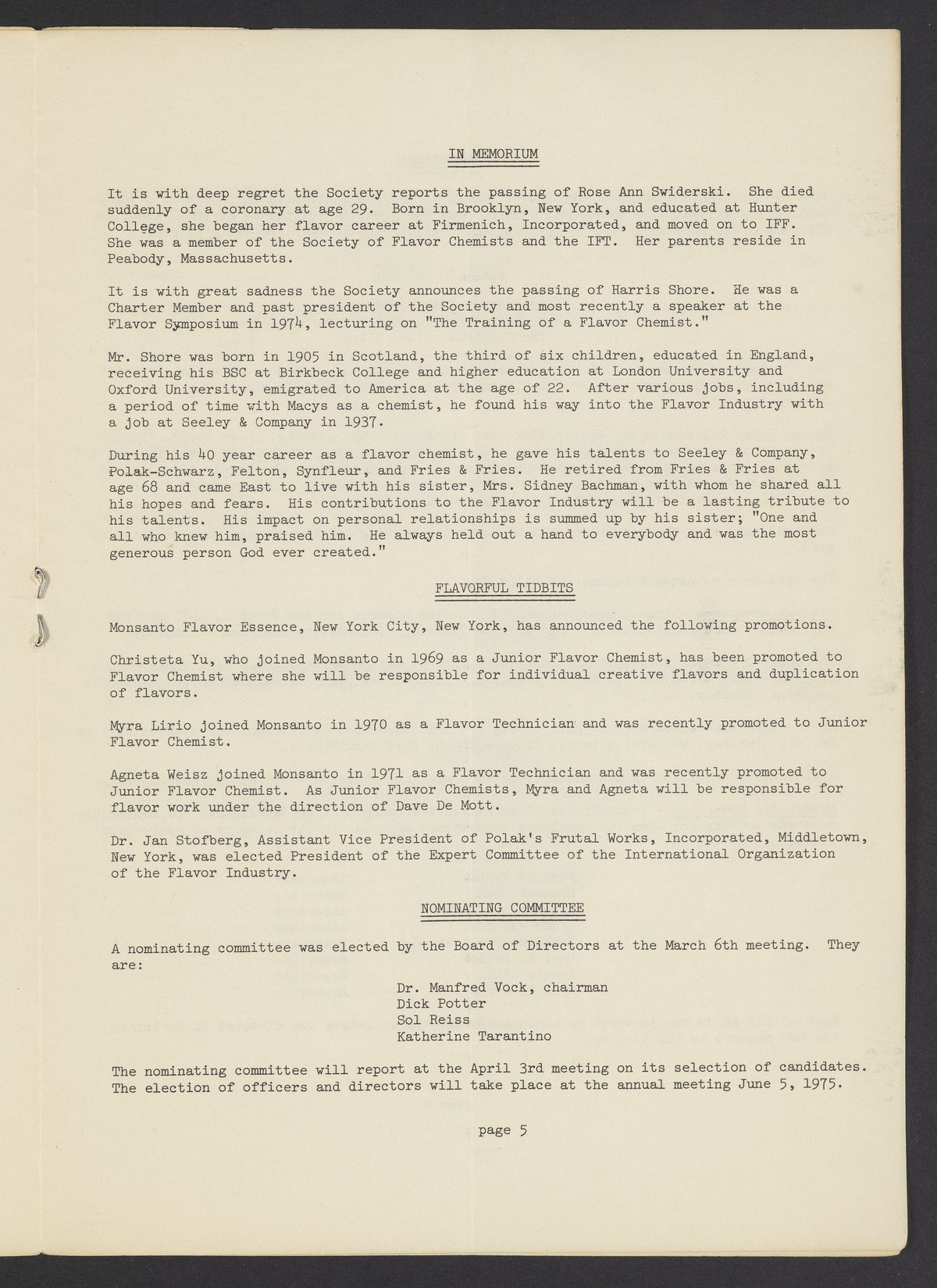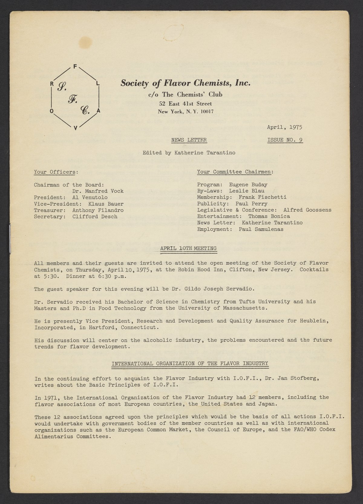 Society of Flavor Chemists newsletter, April 1975