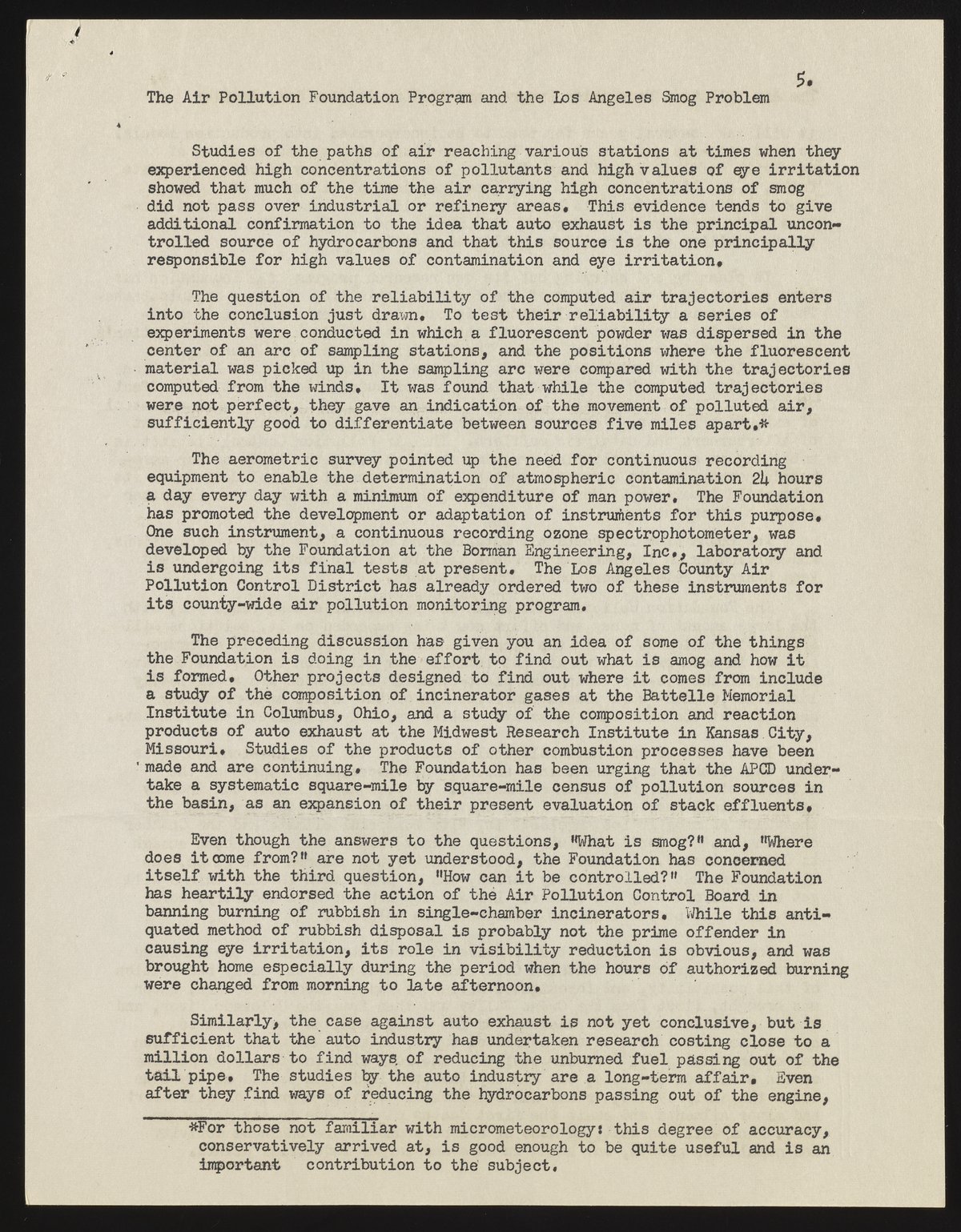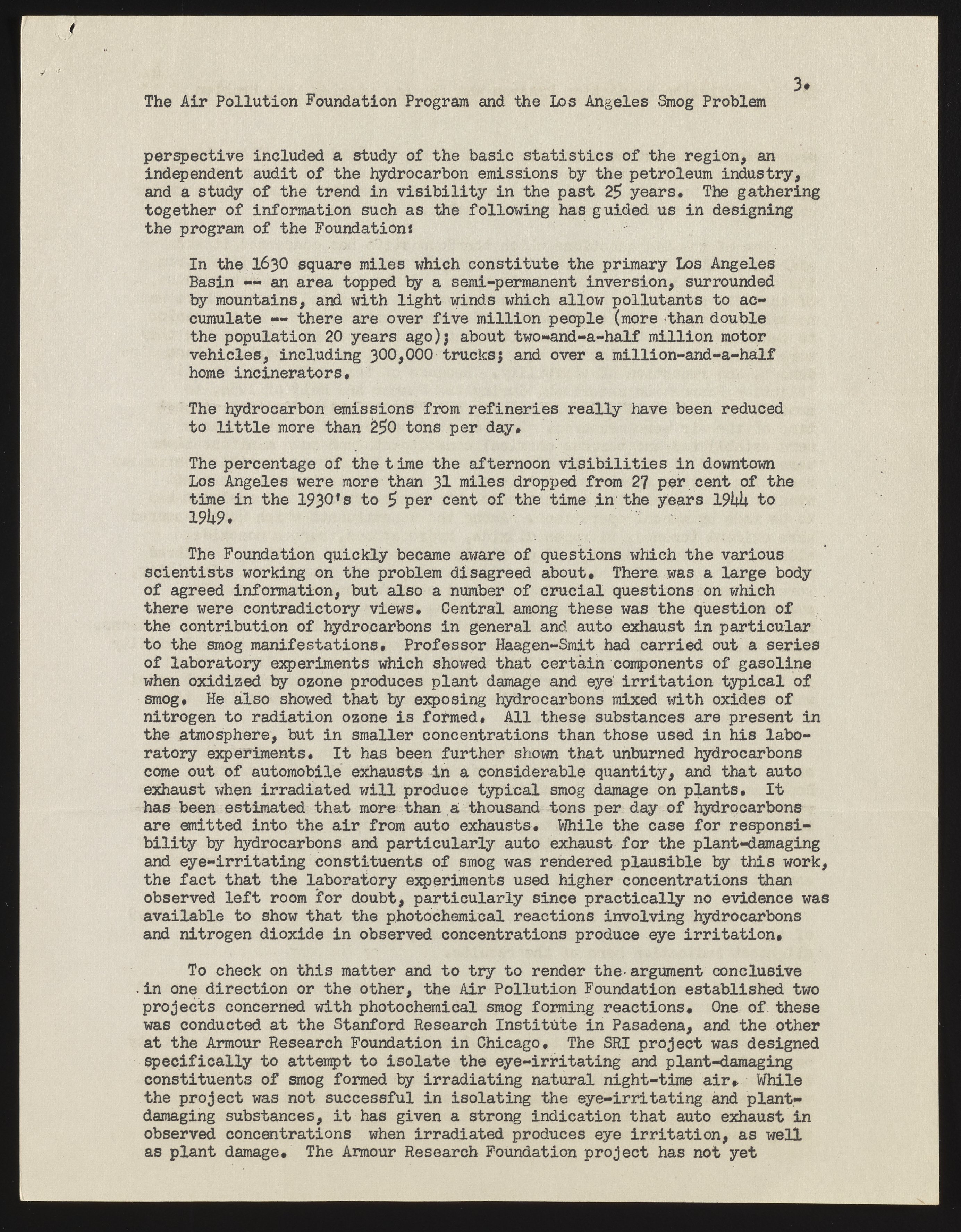 The Air Pollution Foundation and the Los Angeles Smog Problem