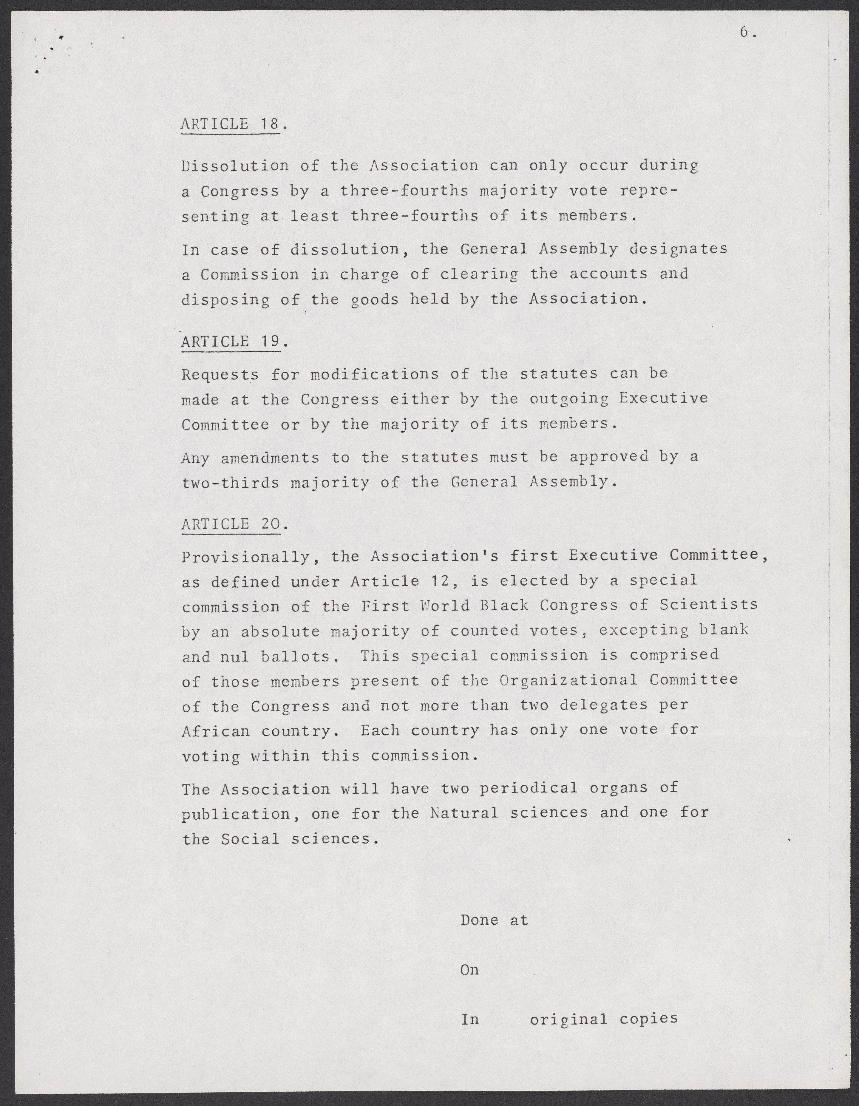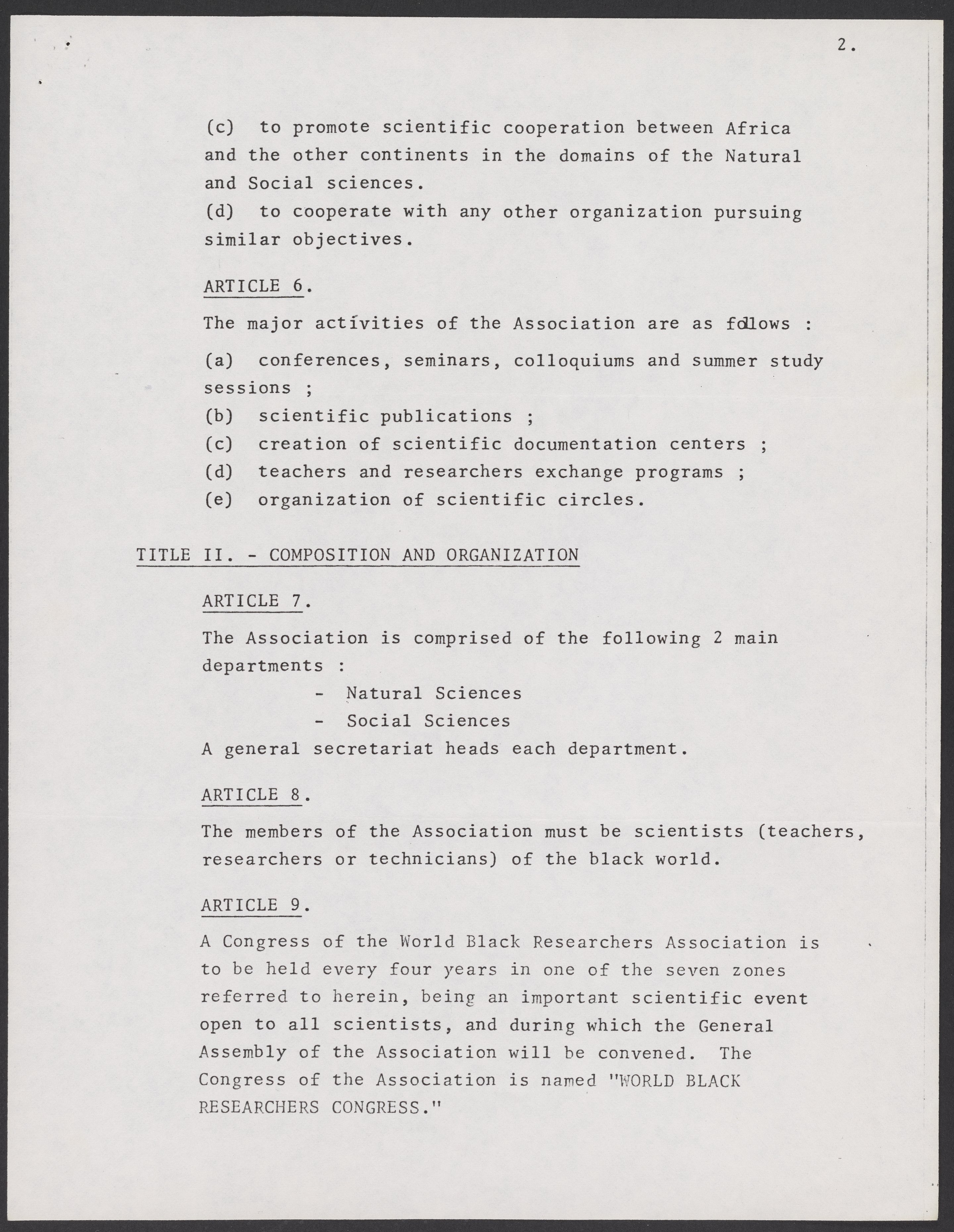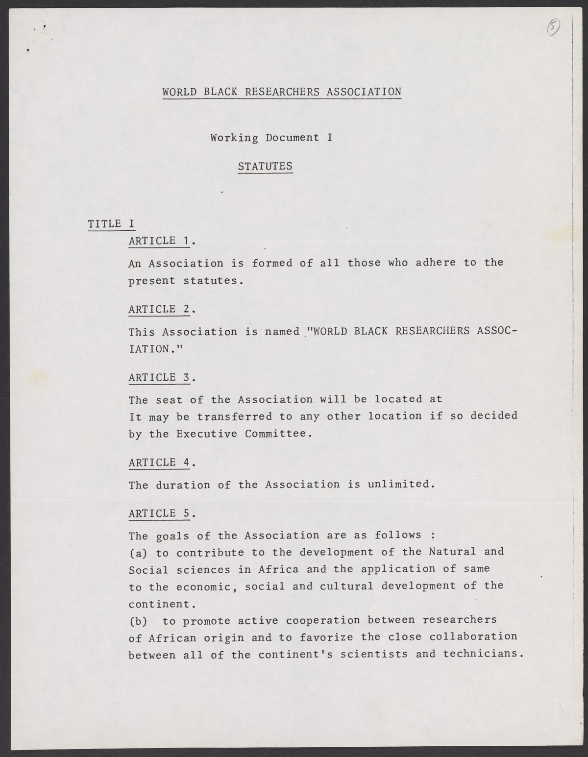World Black Researchers Association. “Statutes of the World Black Researchers Association,” circa 1976. William A. Lester, Jr. Papers, Box 5, Folder 9. Science History Institute. Philadelphia. https://digital.sciencehistory.org/works/qs4nx7w.