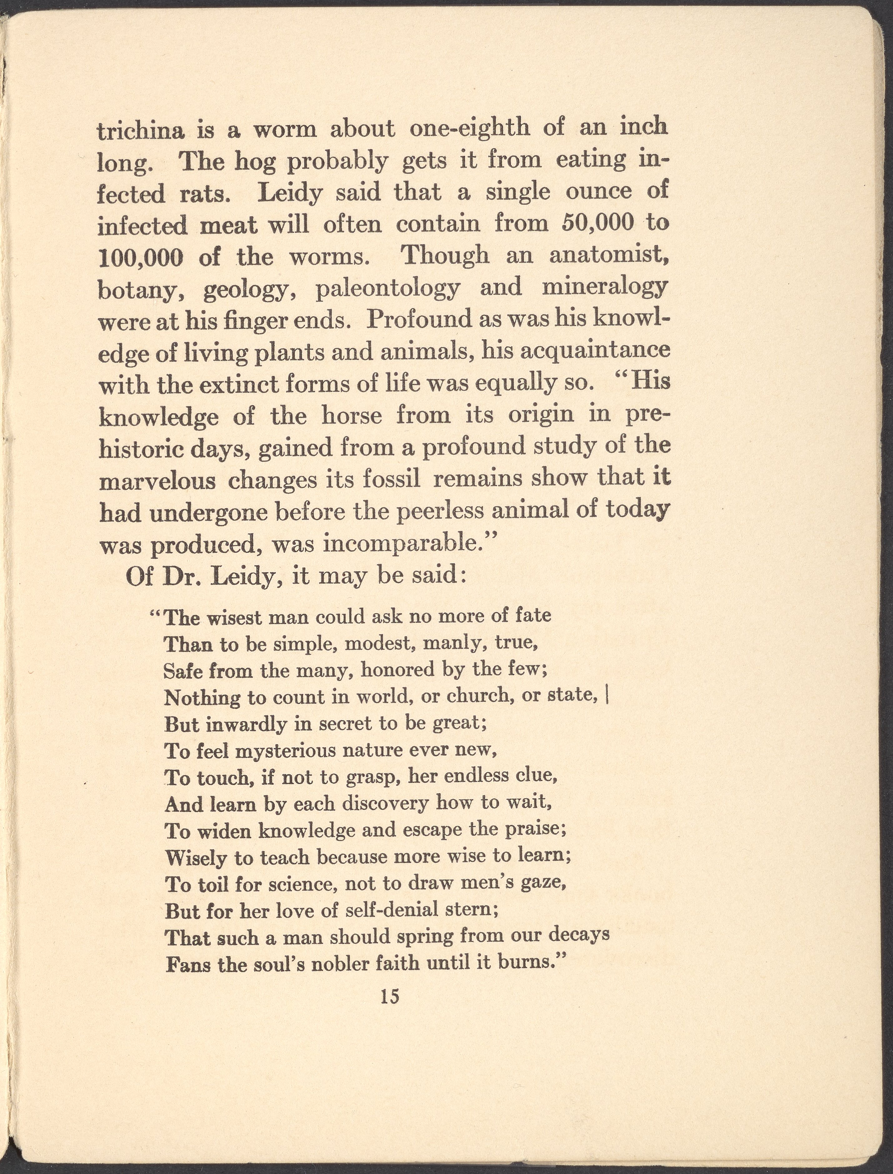 Small JPG1200 x 1562px — 341 KBLarge JPG2880 x 3748px — 1.9 MBFull-sized JPG2886 x 3756px — 1.9 MBOriginal fileTIFF — 2886 x 3756px — 31.0 MBEdgar Fahs Smith (1854-1928) was an American electrochemist known for his interest in the history of chemistry; he founded the American Chemical Society's Division for the History of Chemistry in 1922. Smith's résumé also included over 180 publications, leadership in several academic and professional organizations including as president of the American Chemical Society, and several honors for his work including the Priestly Medal in 1926. Smith was well-regarded as a public speaker. This speech was one of his many talks celebrating Pennsylvanian scientists such as John Bartram (1699-1777), David Rittenhouse (1732-1796), Benjamin Smith Barton (1766-1815), and Joseph Leidy (1823-1891).