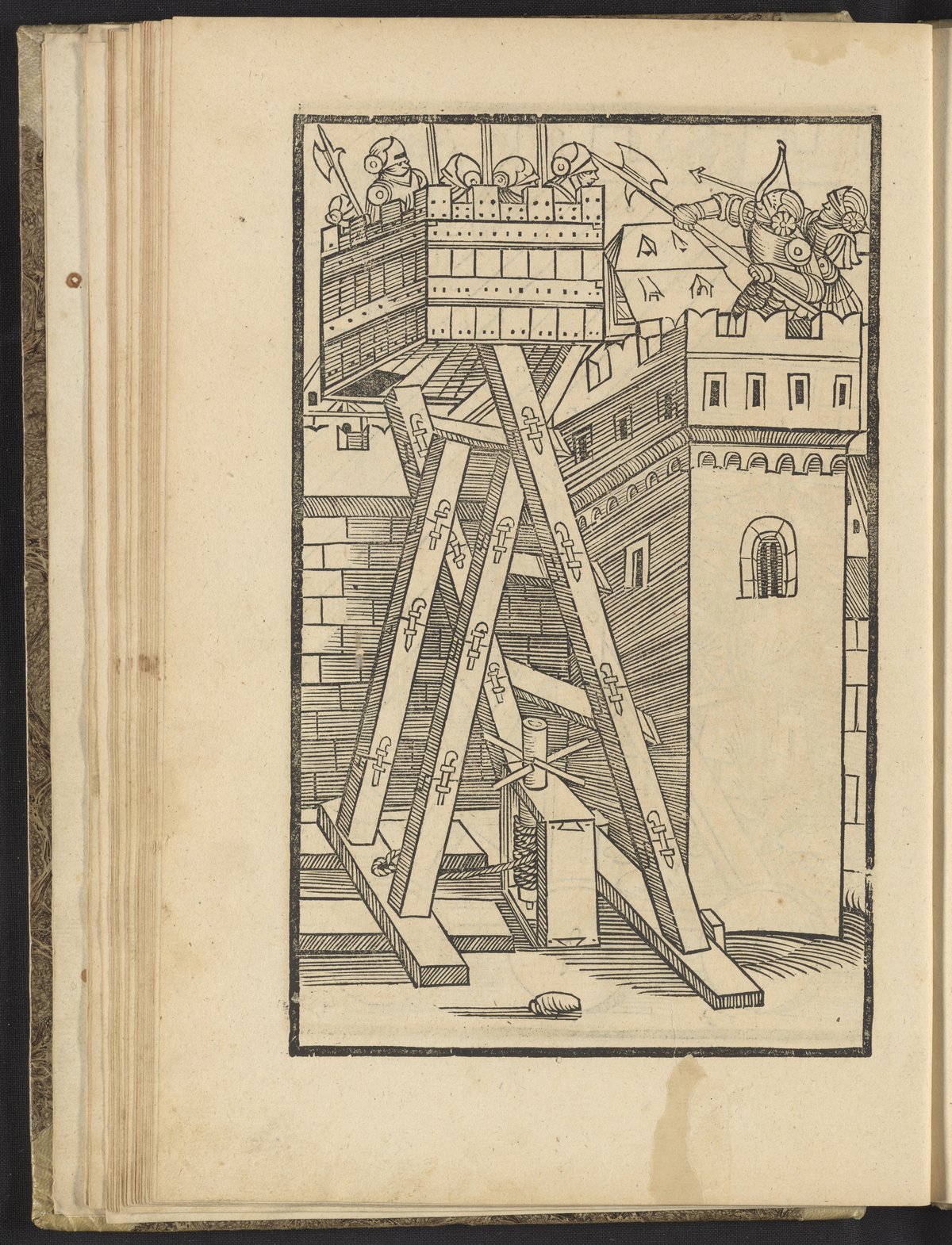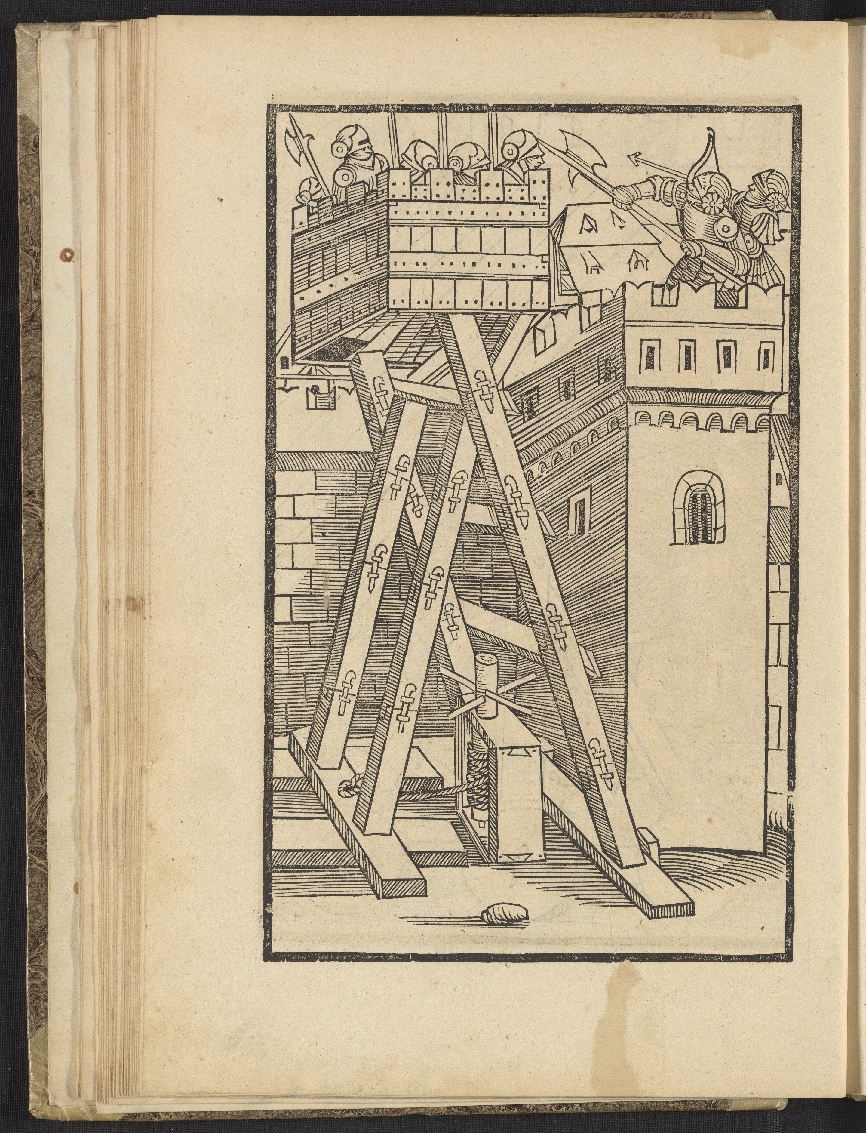 Vegetius Renatus, Flavius. “Siege Tower with Telescopic Stage.” In Vier Bücher Der Ritterschafft. Augsburg, Germany: Heinrich Stayner, 1529. https://digital.sciencehistory.org/works/qv33rw79h.
