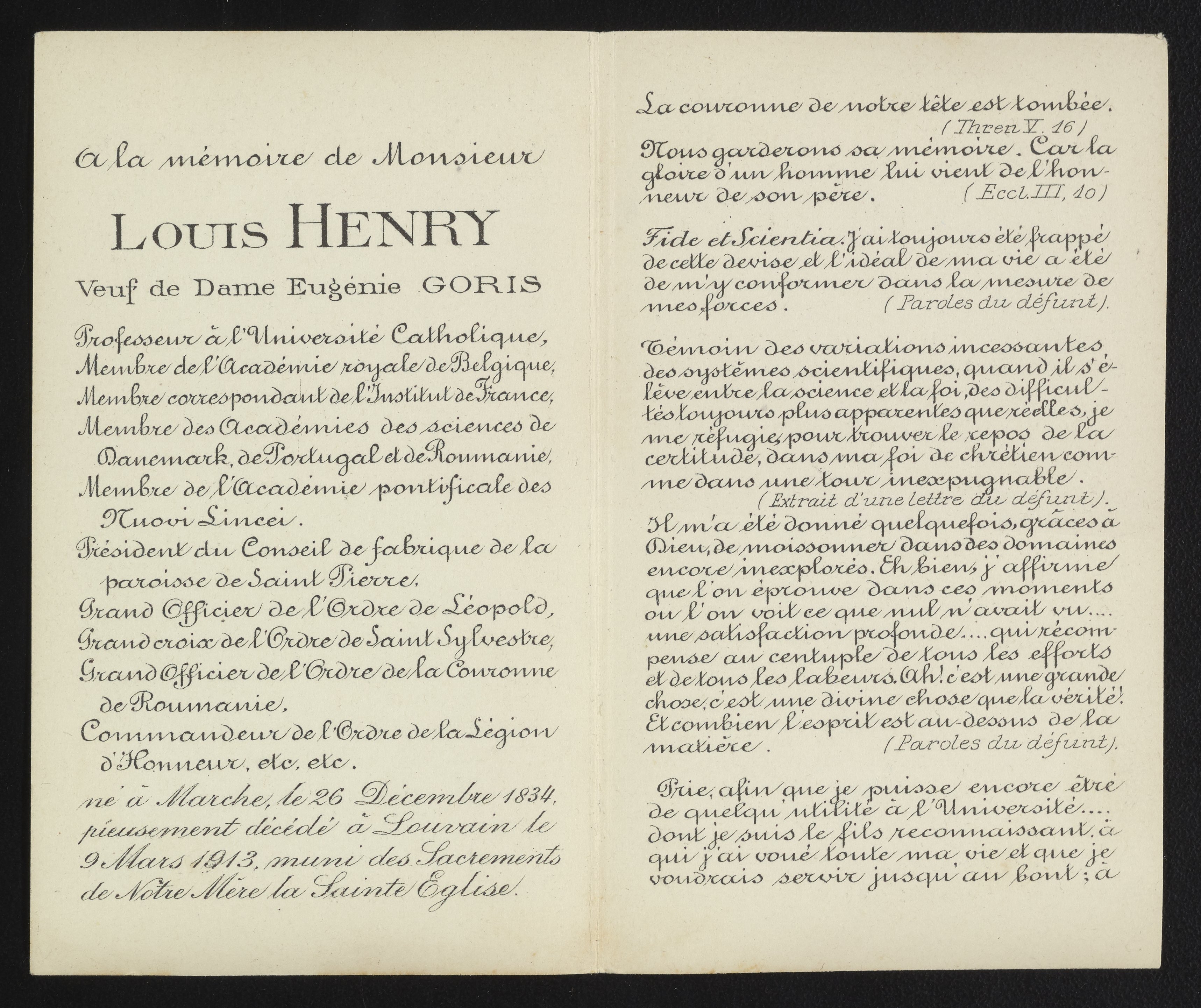 “Obituary for Louis Henry,” circa 1913. Papers of Georg and Max Bredig, Box 21. Science History Institute. Philadelphia. https://digital.sciencehistory.org/works/qvnecms.