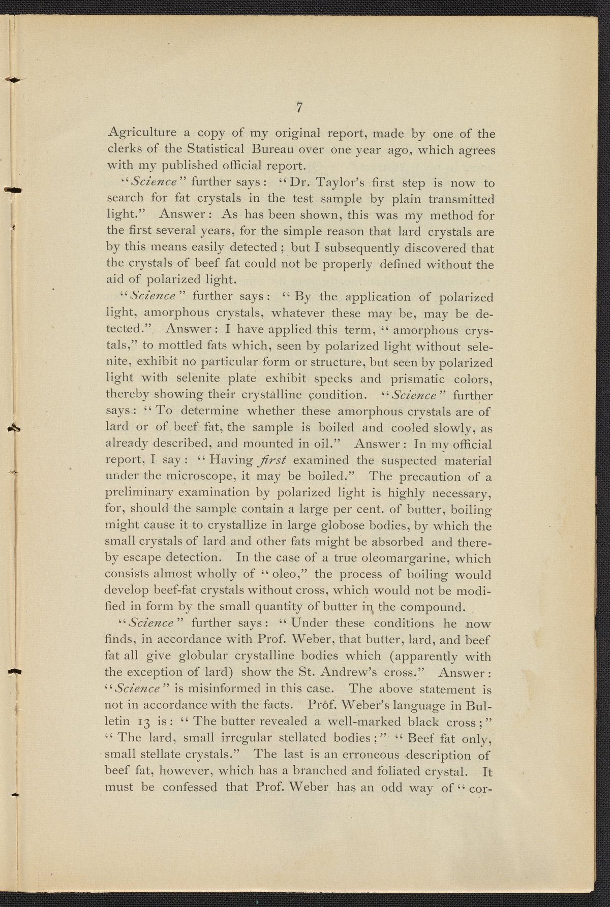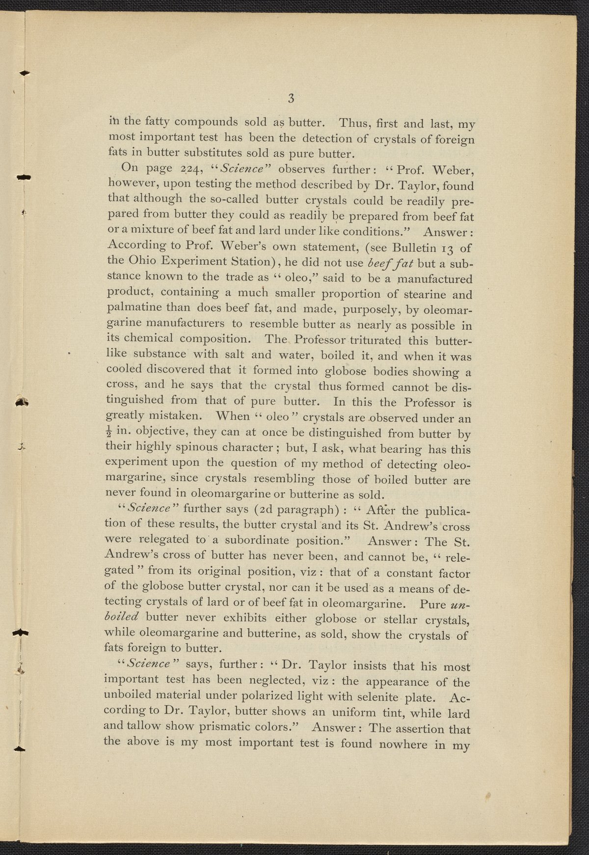 Taylor, Thomas. “Dr. Thomas Taylor's Reply to ‘Science," Relating to the Crystals of Butter, Animal Fats, and Oleomargarine,” 1886. https://digital.sciencehistory.org/works/qz20st34m.