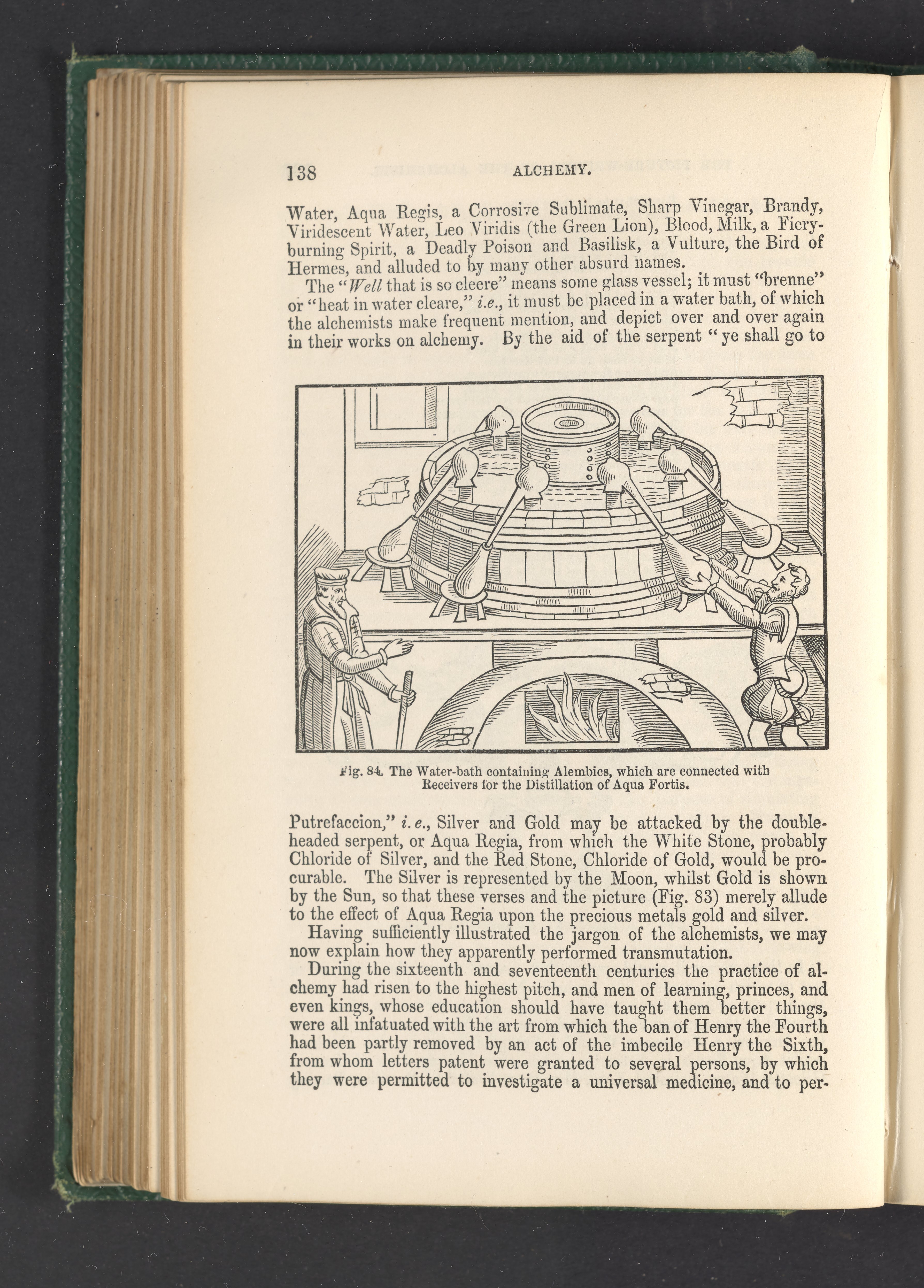 Pepper, John Henry. “Figure 84. The Water-Bath Containing Alembics, Which Are Connected with Receivers for the Distillation of Aqua Fortis.” The Playbook of Metals : Including Personal Narratives of Visits to Coal, Lead, Copper, and Tin Mines; with a Large Number of Interesting Experiments Relating to Alchemy and the Chemistry of Fifty Metallic Elements. London, England, 1862. https://digital.sciencehistory.org/works/qzsm3sv.