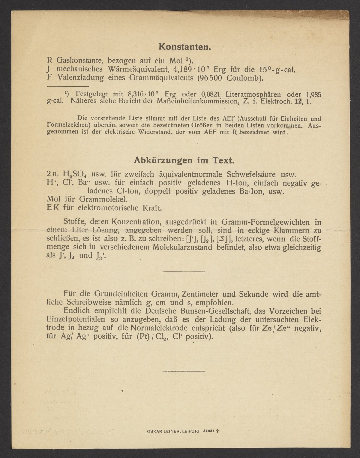“Liste Von Formelzeichen.” Oskar Leiner, August 1918. Papers of Georg and Max Bredig, Box 3, Folder 5. Science History Institute. Philadelphia. https://digital.sciencehistory.org/works/r1o3o66.