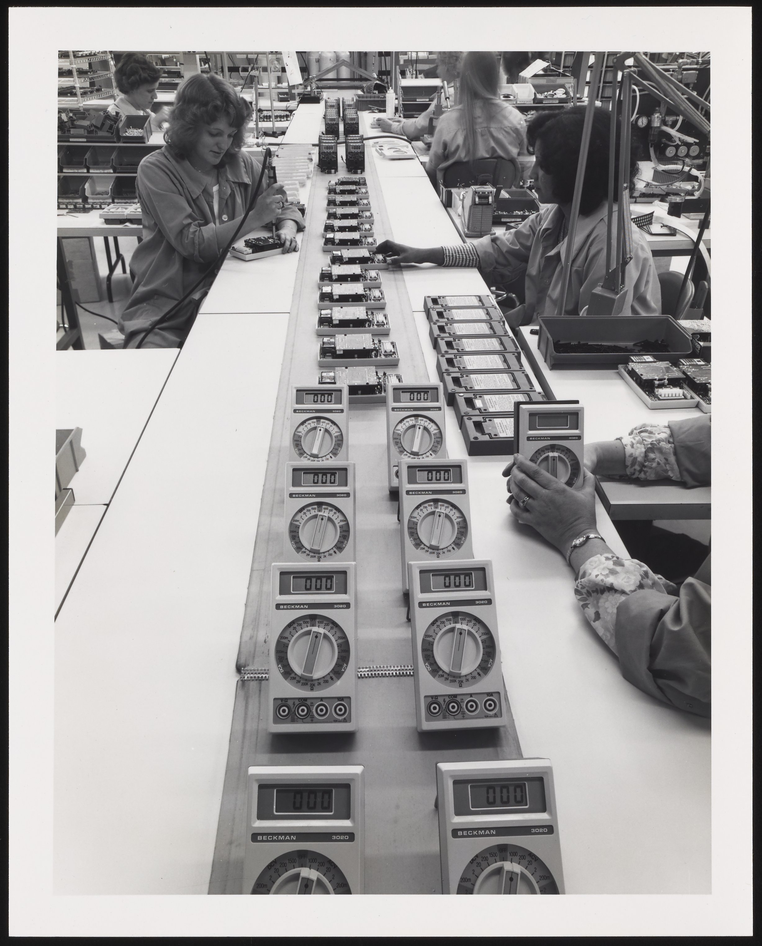 “Women Working on the Beckman Digital Multimeter Production Line,” n.d. Beckman Historical Collection, Box 82. Science History Institute. Philadelphia. https://digital.sciencehistory.org/works/r494vk31b.