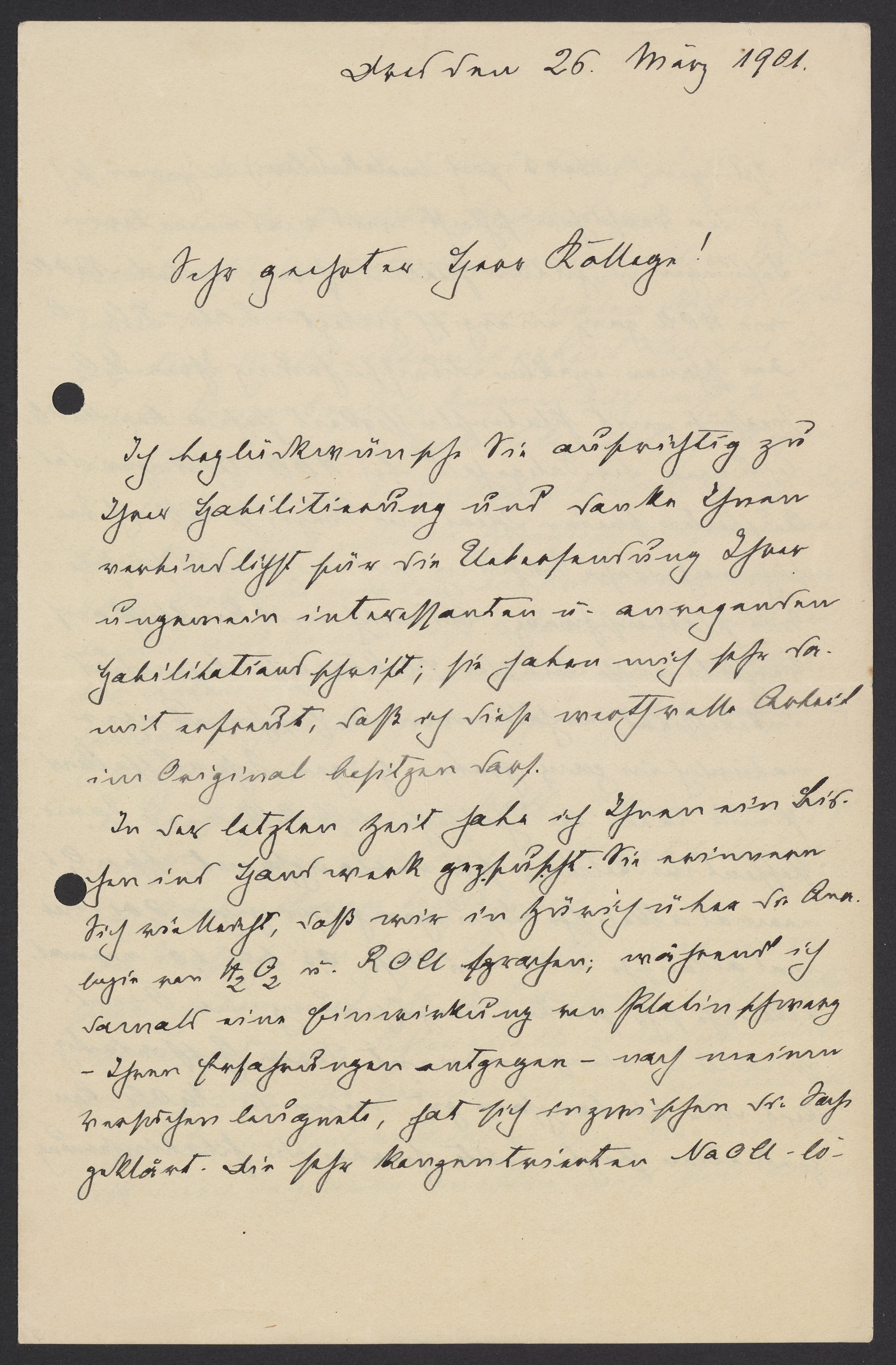 Letter from Fritz Foerster to Georg Bredig, March 1901