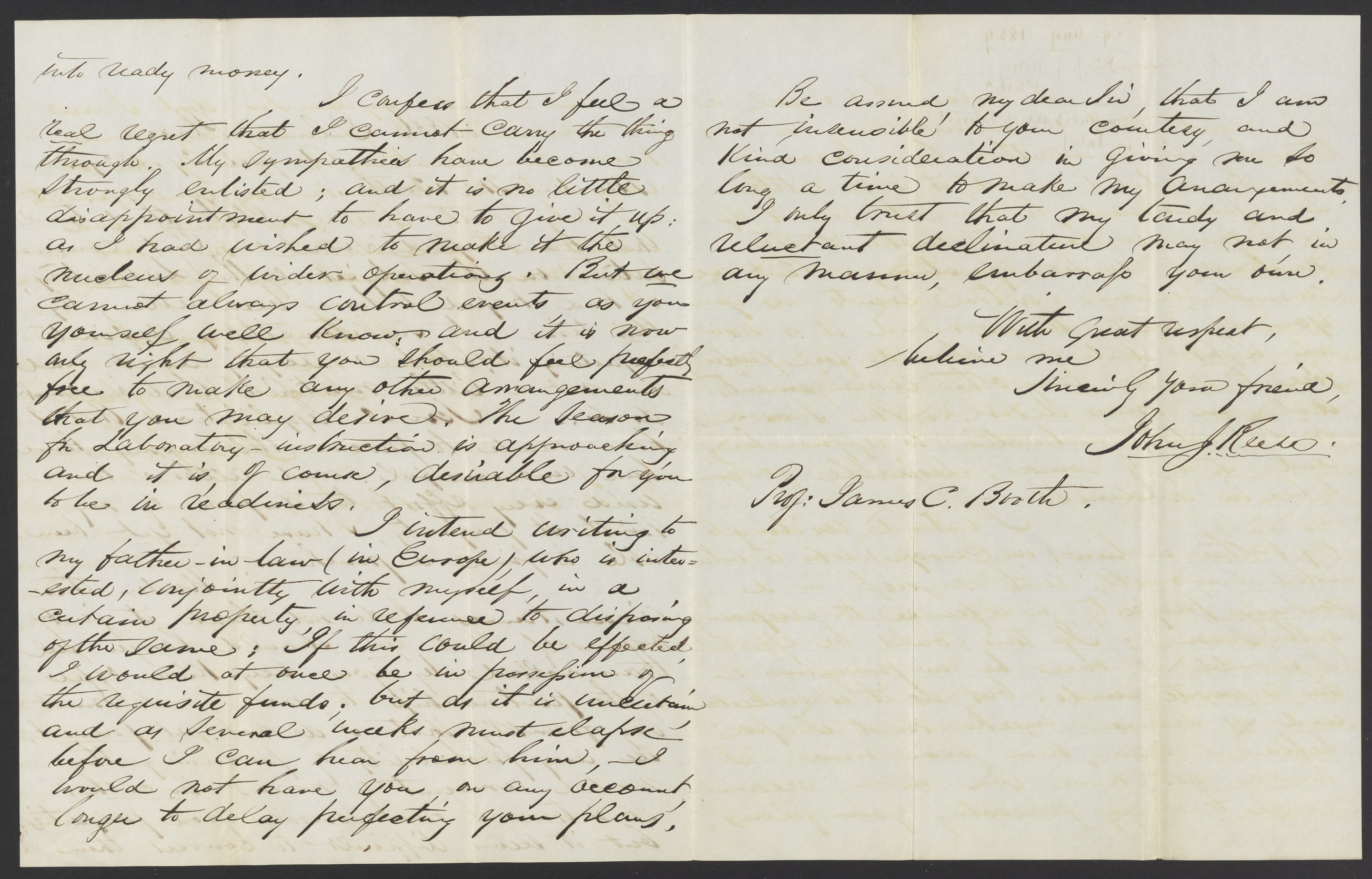 Letter from Dr. John J. Reese to James Curtis Booth, August 29, 1859