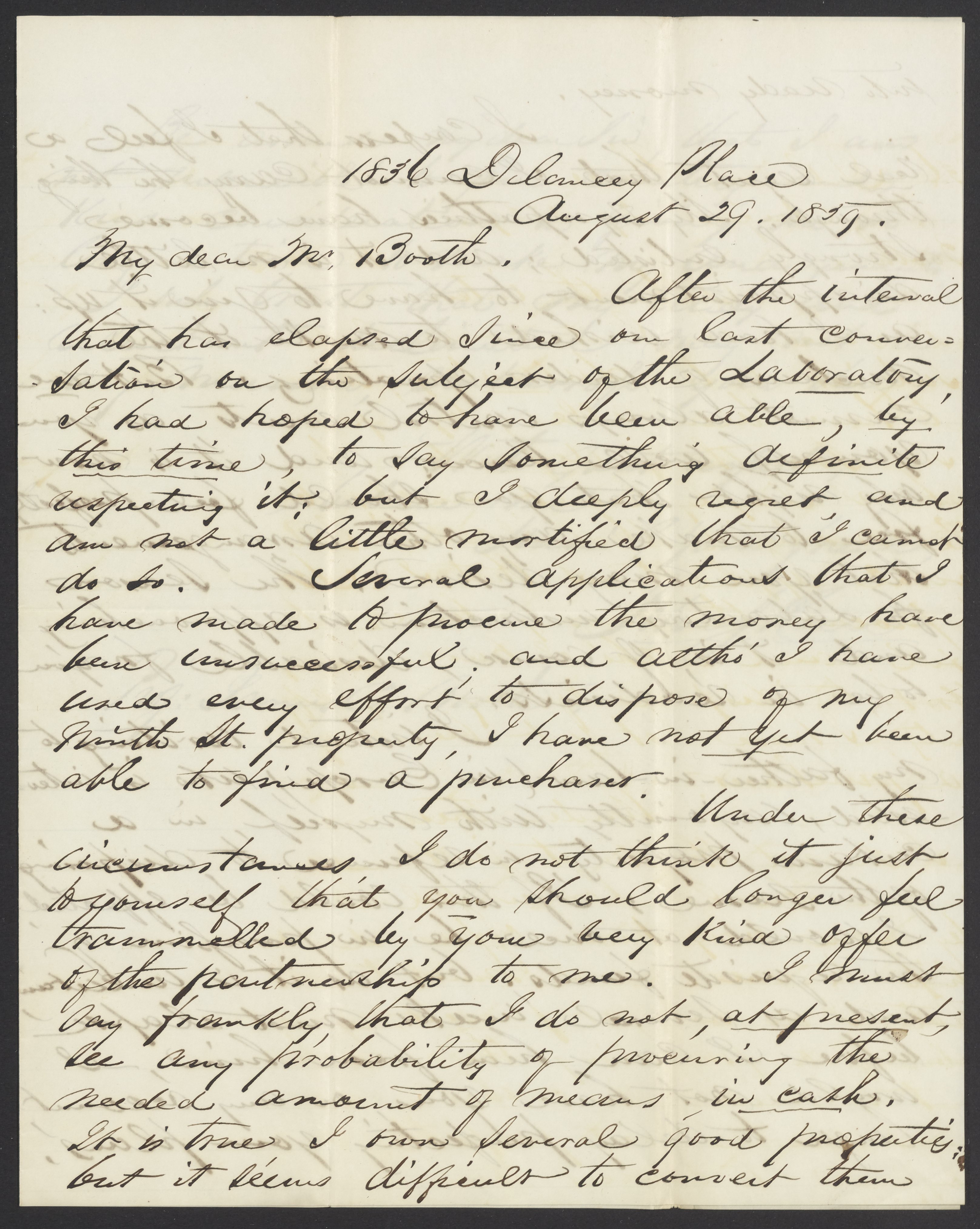 Letter from Dr. John J. Reese to James Curtis Booth, August 29, 1859