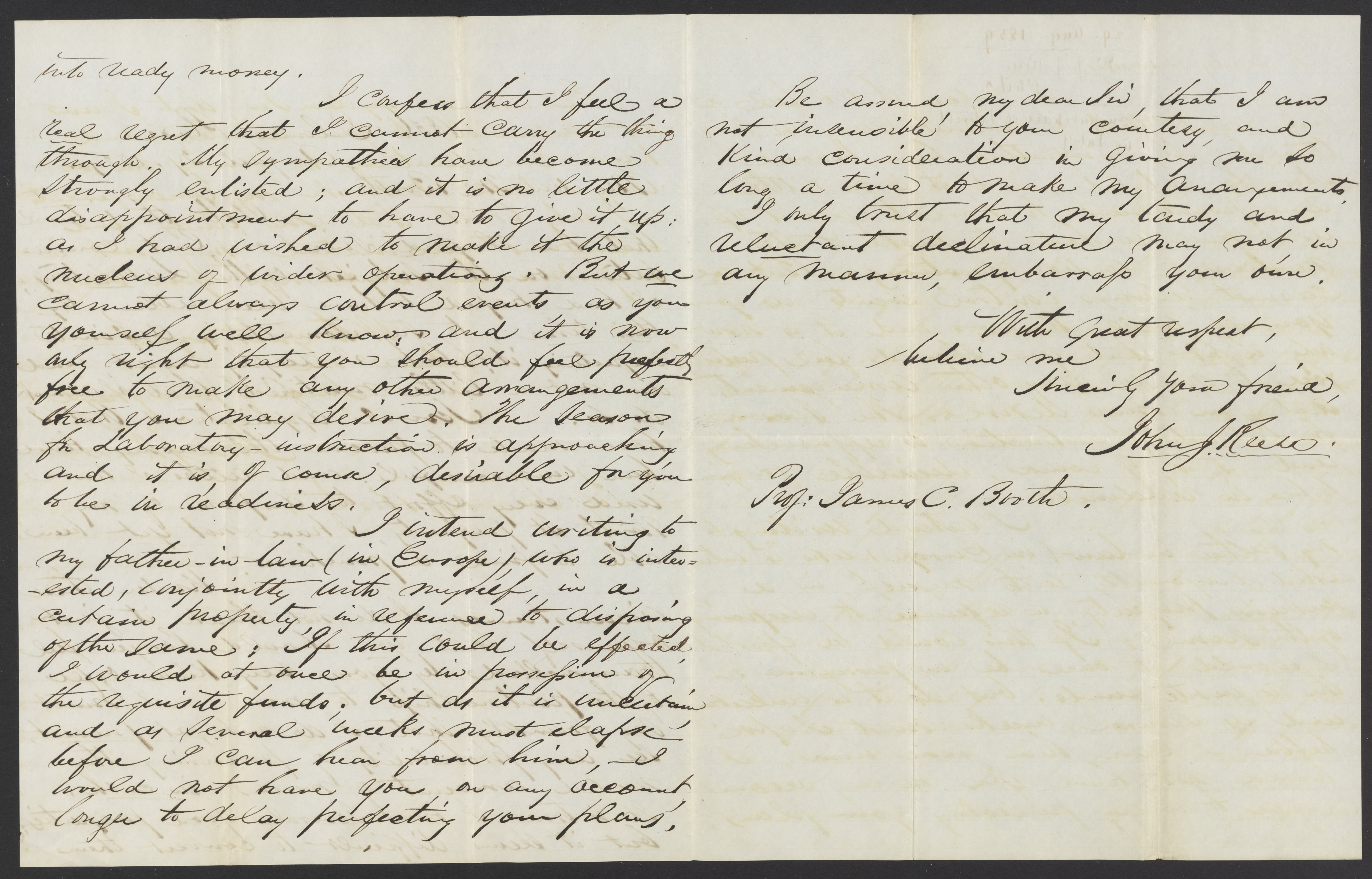 Small JPG1200 x 1504px — 342 KBLarge JPG2880 x 3610px — 1.2 MBFull-sized JPG3233 x 4052px — 1.4 MBOriginal fileTIFF — 3233 x 4052px — 37.5 MBDr. John James Reese (1818-1892), a professor of medical jurisprudence and toxicology at the University of Pennsylvania, writes to propose a purchase of a share in James Curtis Booth's (1810-1888) laboratory.