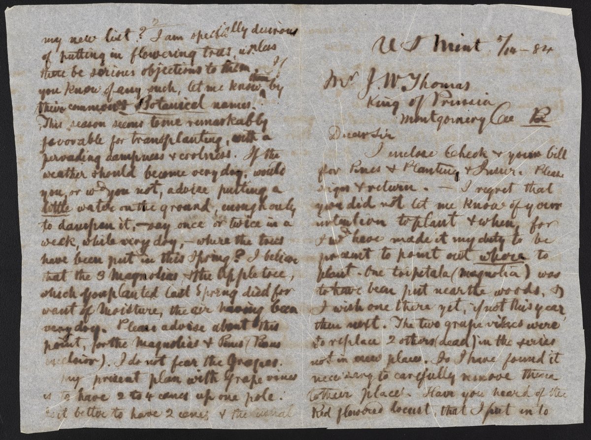 Small JPG1200 x 894px — 262 KBLarge JPG2880 x 2146px — 1.4 MBFull-sized JPG7002 x 5217px — 6.3 MBOriginal fileTIFF — 7002 x 5217px — 105 MBJames Curtis Booth (1810-1888) laments the fact that Joseph W. Thomas gave him no warning of his intention to plant, hence Booth was unable to specify where he wanted each item to go.