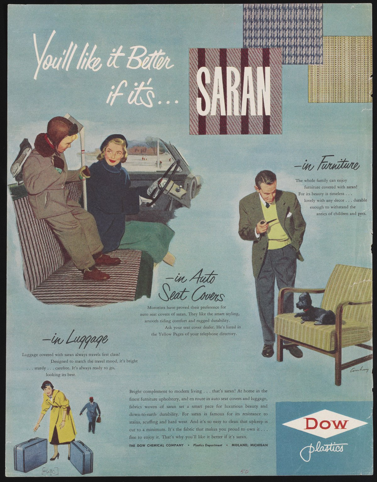 Dow Chemical Company. “You'Ll Like It Better If It's Saran,” circa 1950. Advertisements from the Dow Chemical Historical Collection, Box 9. Science History Institute. Philadelphia. https://digital.sciencehistory.org/works/rc5j8fz.