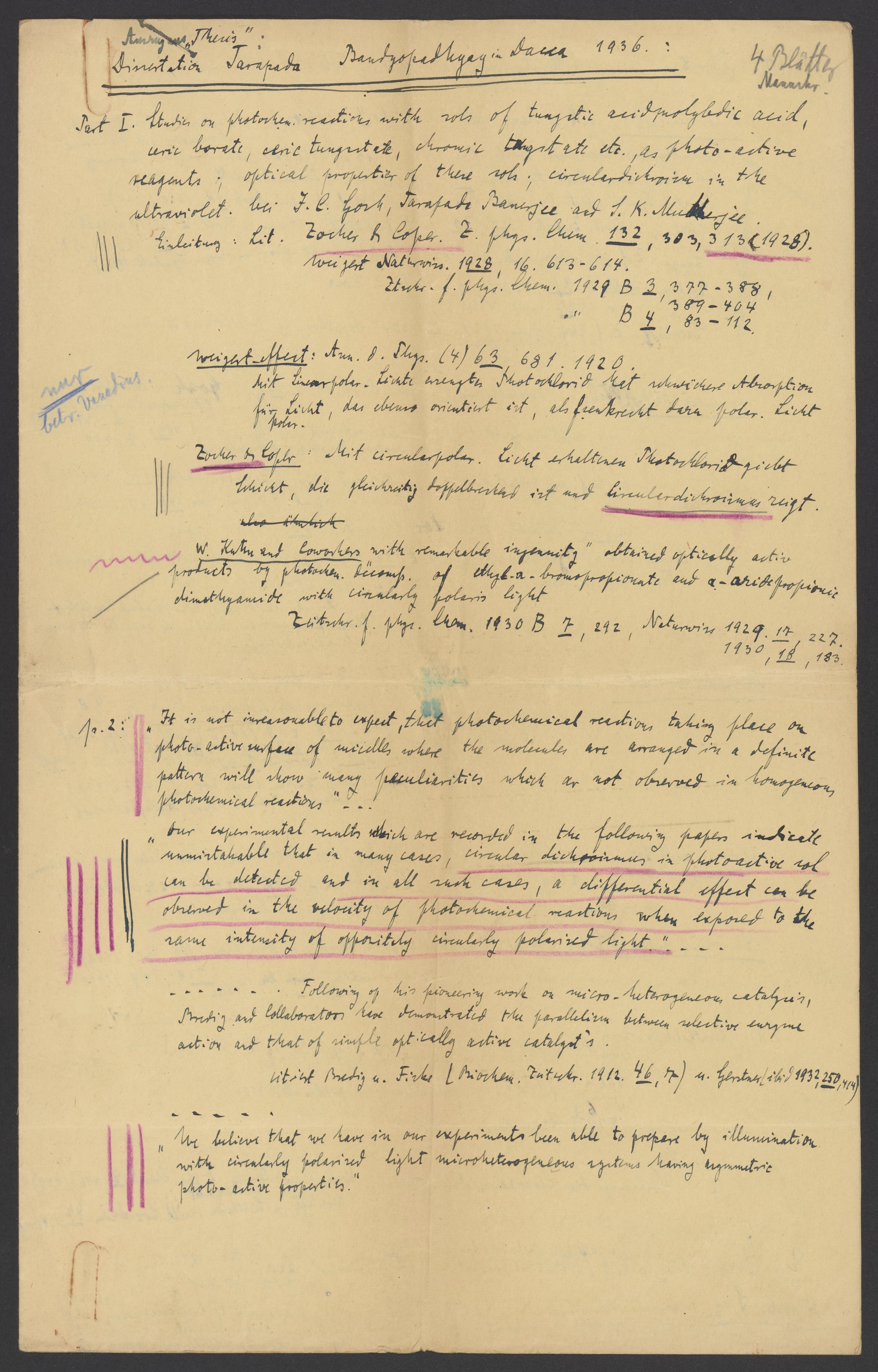 “Tarapada Bandyopadhyay's Doctoral Dissertation Notes,” 1936. Papers of Georg and Max Bredig, Box 5, Folder 11. Science History Institute. Philadelphia. https://digital.sciencehistory.org/works/repeski.