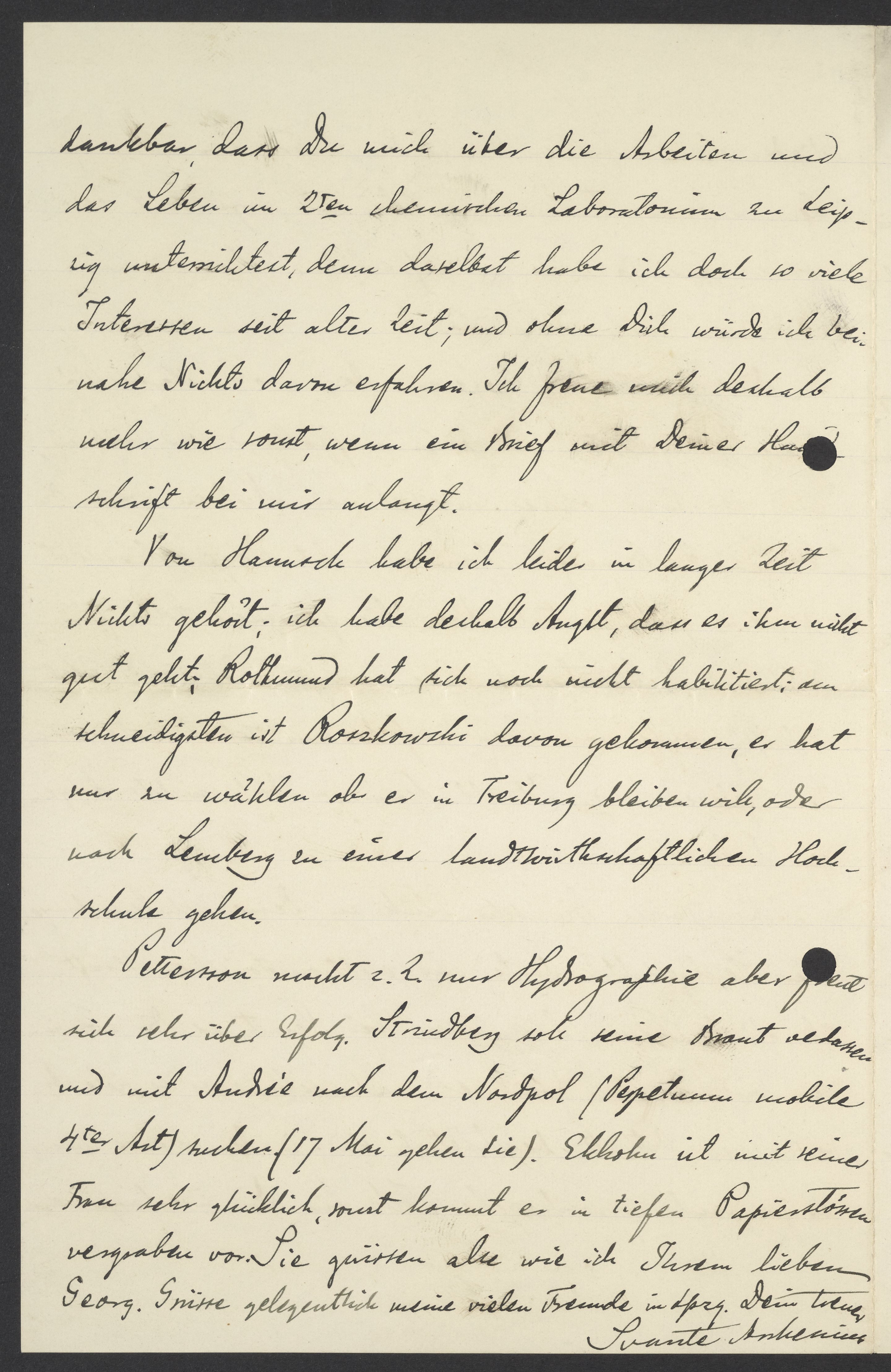 Letter from Svante Arrhenius to Georg Bredig, May 1897