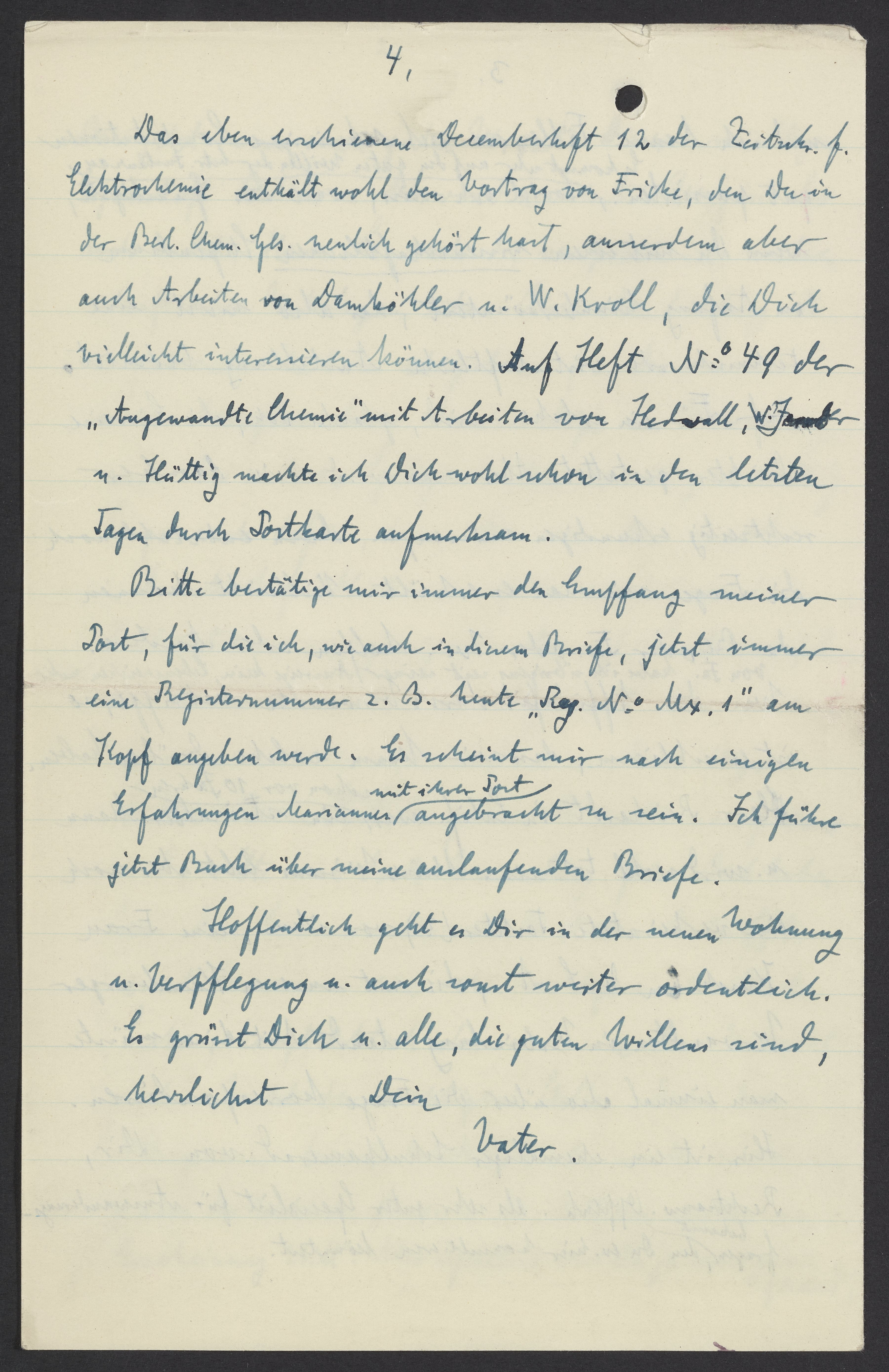 Small JPG1200 x 1826px — 349 KBLarge JPG2880 x 4382px — 1.7 MBFull-sized JPG3618 x 5505px — 2.6 MBOriginal fileTIFF — 3618 x 5505px — 57.0 MBGeorg Bredig (1868-1944) provides professional advice to his son, Max Bredig (1902-1977), and asks him to always confirm the arrival of his correspondence.