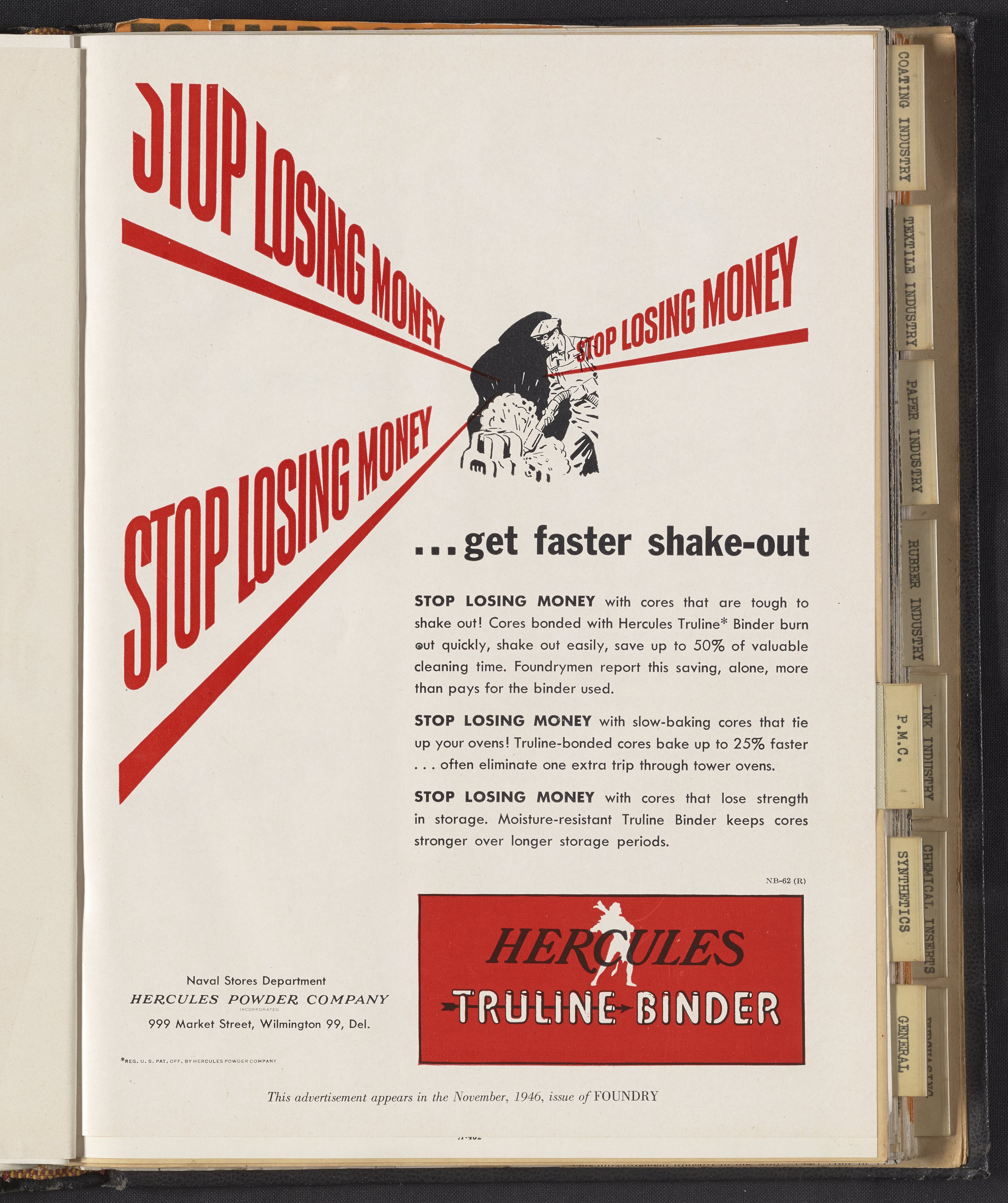 Hercules Incorporated. “Stop Losing Money...Get Faster Shake-Out.” 1946 Hercules Advertisements, 1946. Records of Hercules Incorporated, Volume 1946. Science History Institute. Philadelphia. https://digital.sciencehistory.org/works/rn301216v.