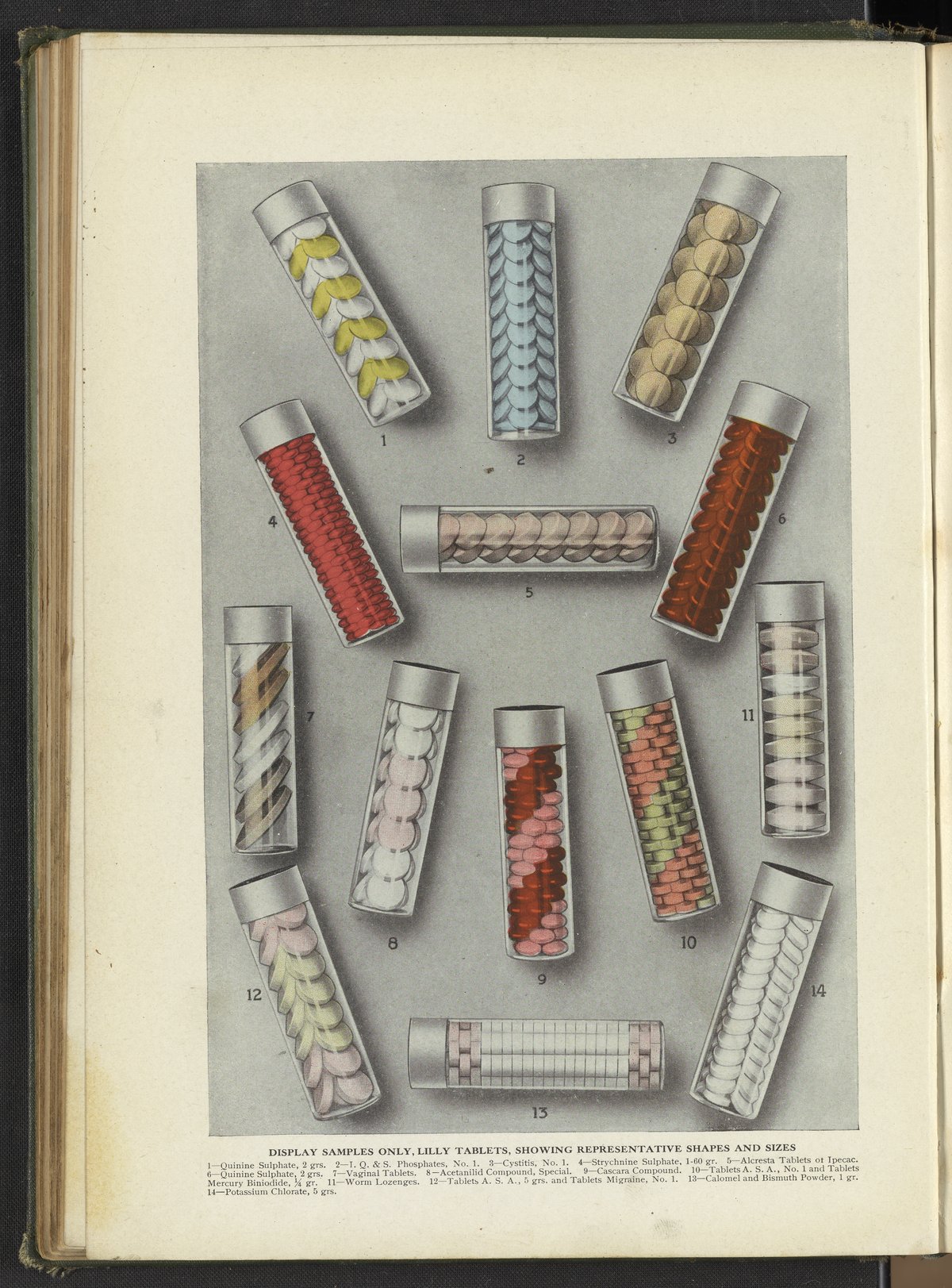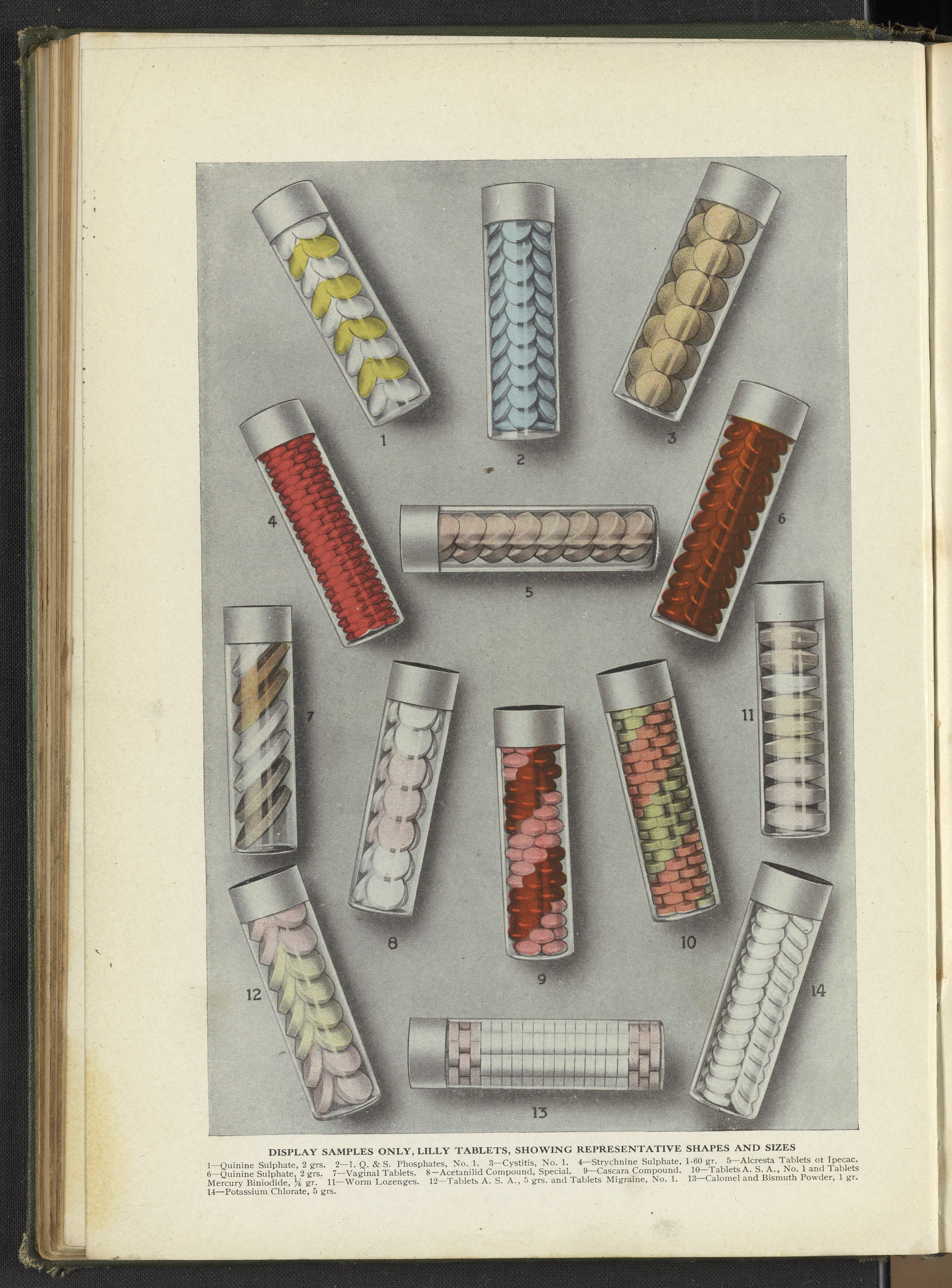 Eli Lilly and Company. “Display Samples Only, Lilly Tablets, Showing Representative Shapes and Sizes.” Hand Book of Pharmacy and Therapeutics. Indianapolis, Indiana, circa 1919. https://digital.sciencehistory.org/works/rn3012573.