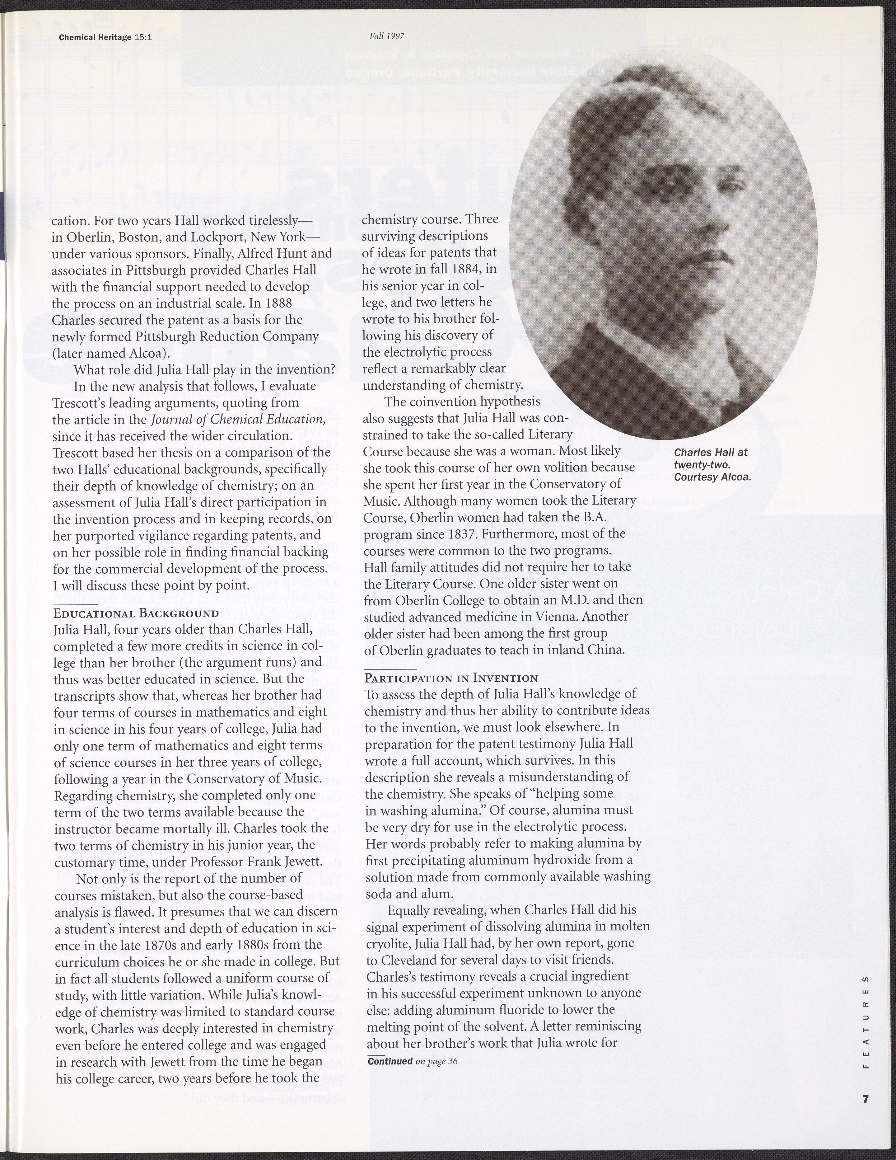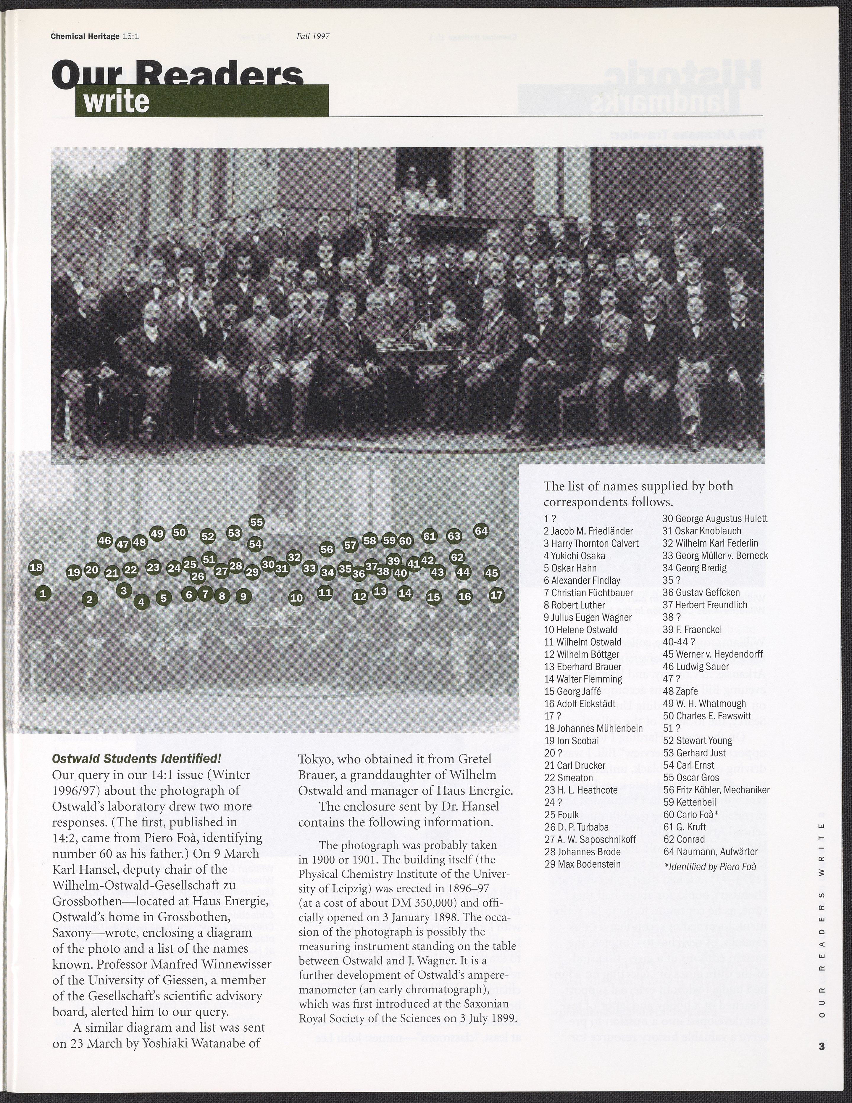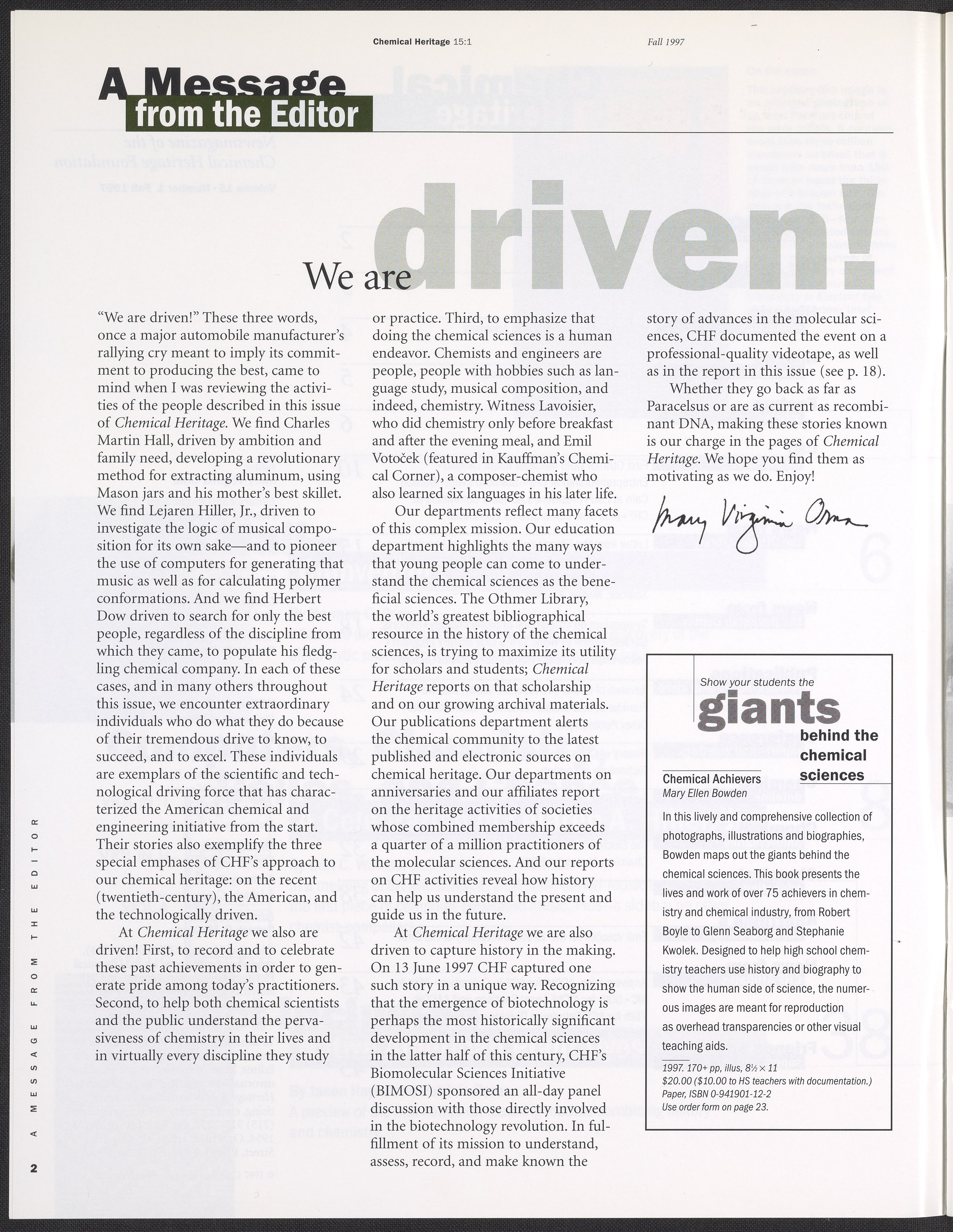 Chemical Heritage, Volume 15 Number 1