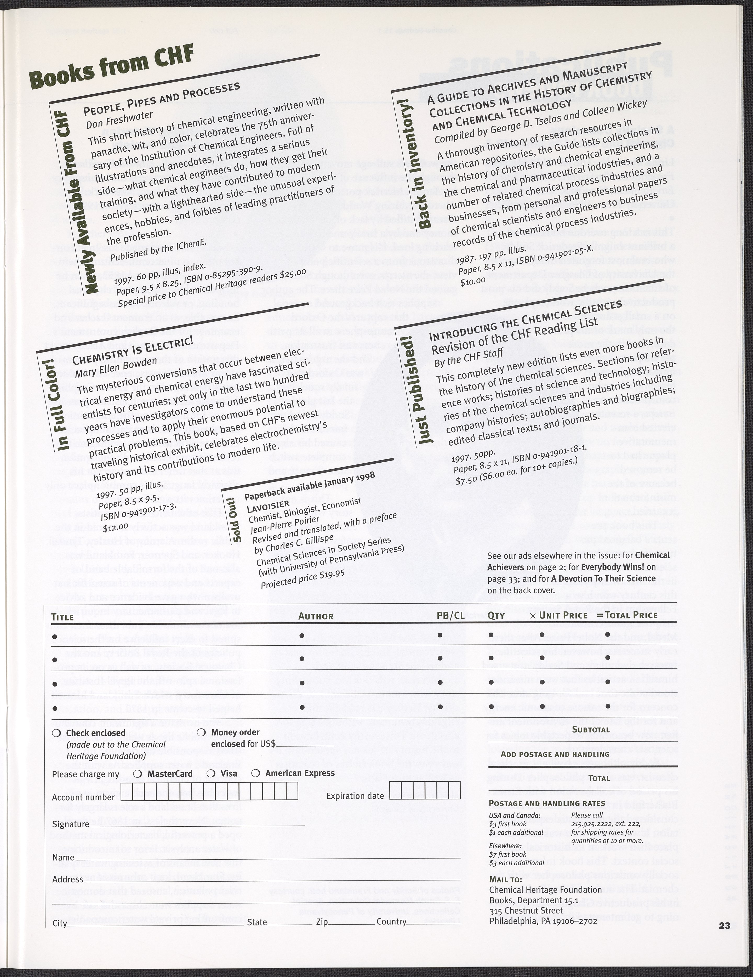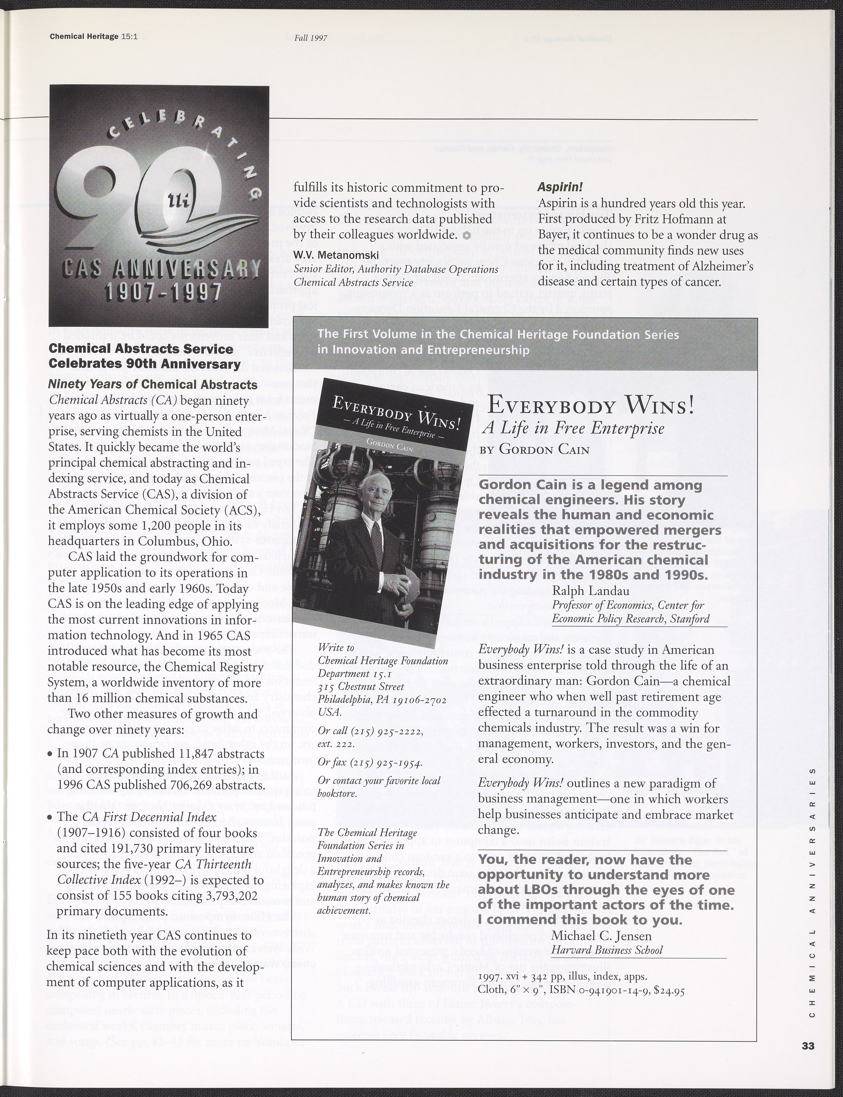 “Chemical Heritage, Volume 15 Number 1.” Philadelphia, Pennsylvania: Chemical Heritage Foundation, 1997. 099C001. Science History Institute. Philadelphia. https://digital.sciencehistory.org/works/row1swz.