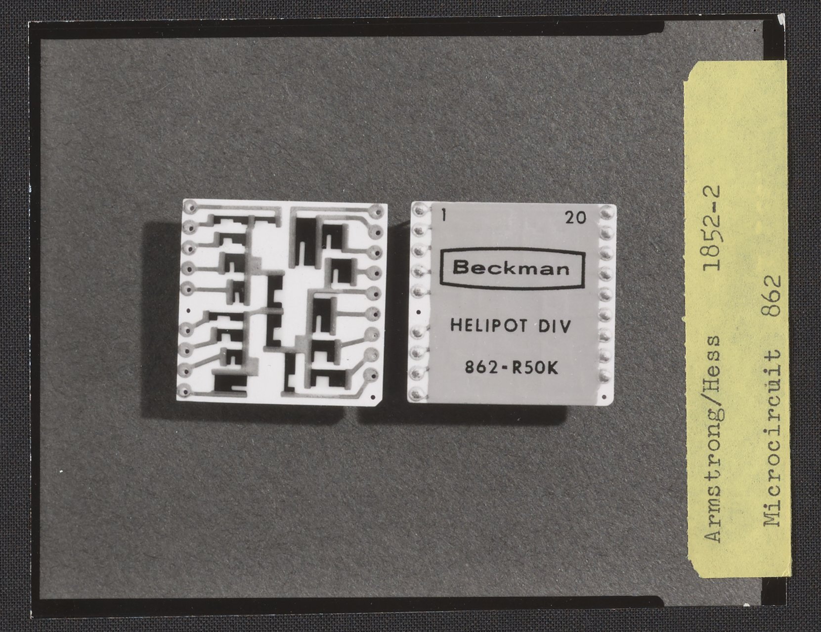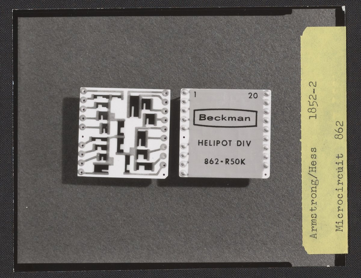 Armstrong & Hess. “Helipot Model 862 Ladder Network Microcircuit,” 1950–1969. Beckman Historical Collection, Box 85. Science History Institute. Philadelphia. https://digital.sciencehistory.org/works/rr171x56z.