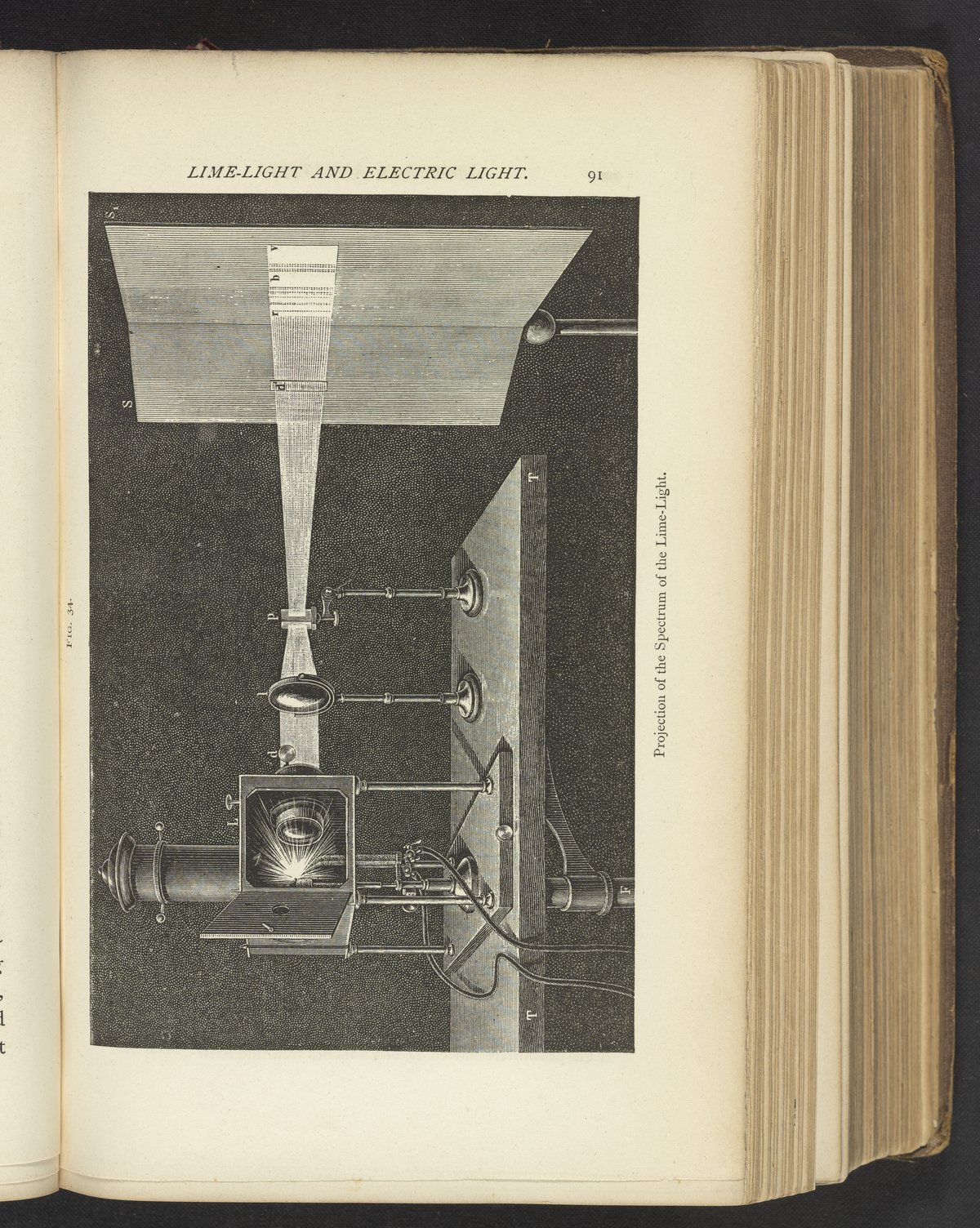 Schellen, Heinrich. “Projection of the Spectrum of the Lime-Light.” Spectrum Analysis in Its Application to Terrestrial Substances, and the Physical Constitution of the Heavenly Bodies. London, England, 1872. https://digital.sciencehistory.org/works/rr171z280.
