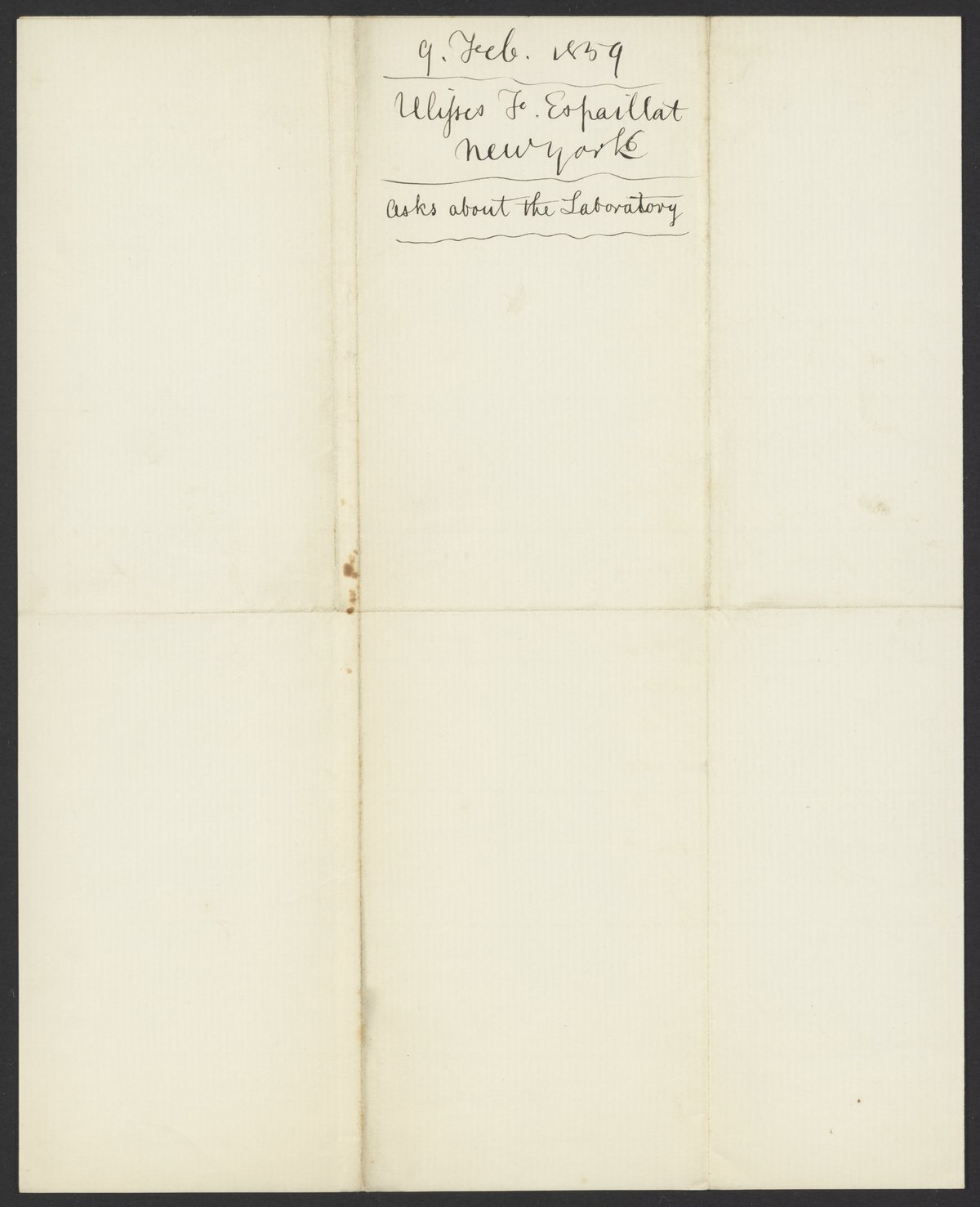 Espaillat, Ulises F. “Letter from Ulises F. Espaillat to James Curtis Booth, February 9, 1859,” February 9, 1859. Papers of James Curtis Booth, Box 1, Folder 7. Science History Institute. Philadelphia. https://digital.sciencehistory.org/works/rs0ys56.