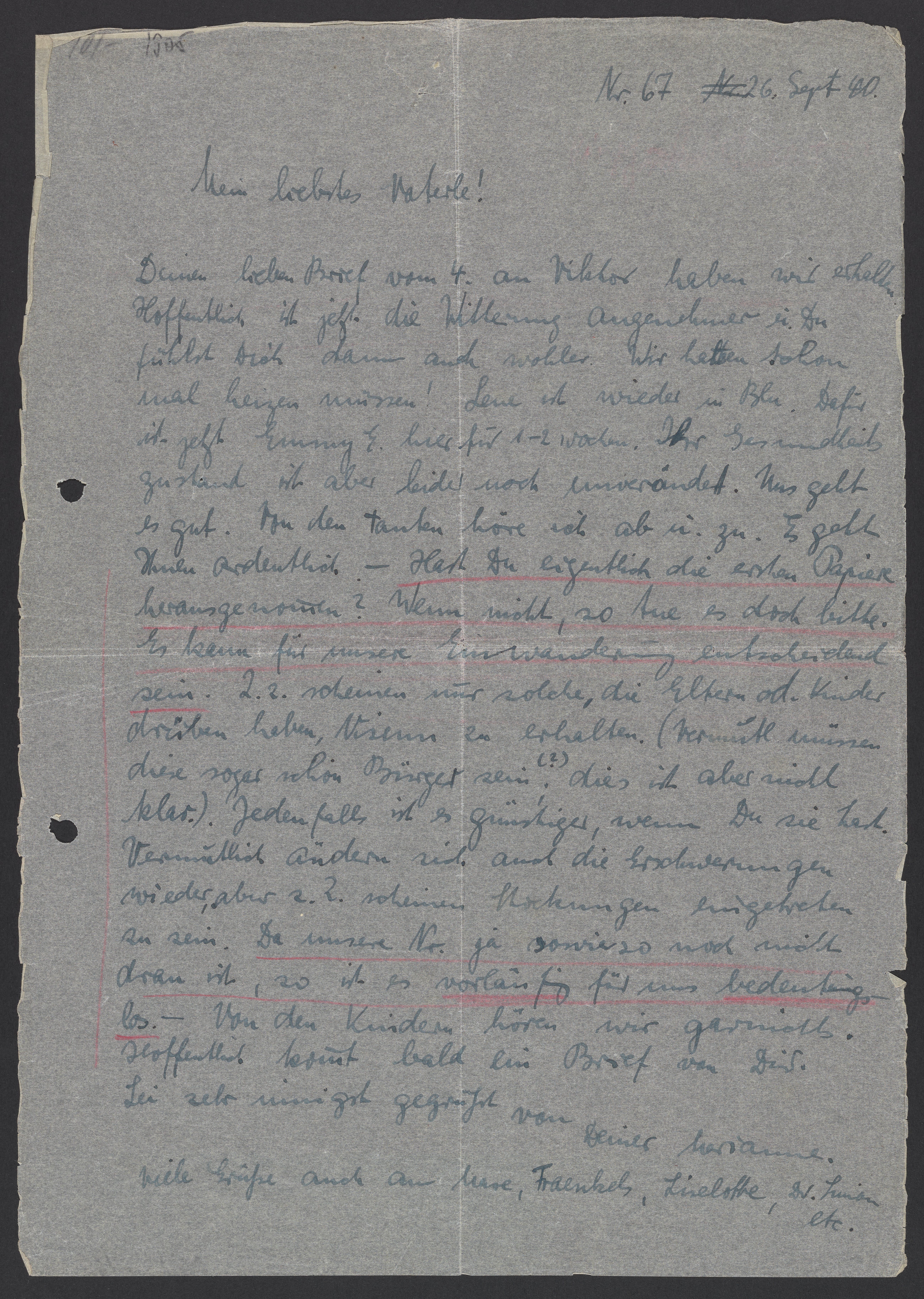 Letter from Marianne Homburger to Georg Bredig, September 26, 1940