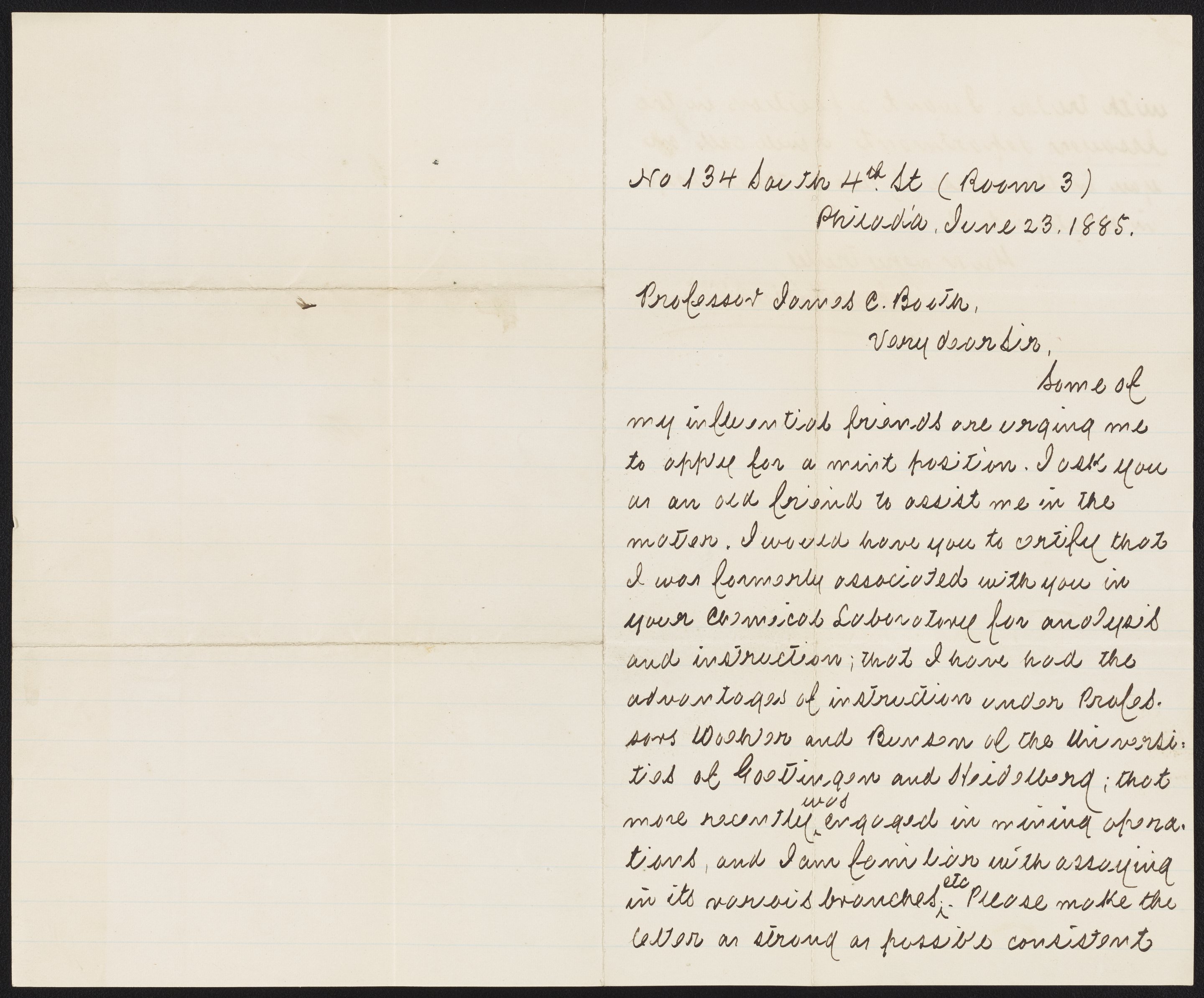 Muckle, Alex. “Letter from Alex Muckle to James Curtis Booth, June 23, 1885,” July 2, 1885. Papers of James Curtis Booth, Box 2, Folder 7. Science History Institute. Philadelphia. https://digital.sciencehistory.org/works/rtvqba0.