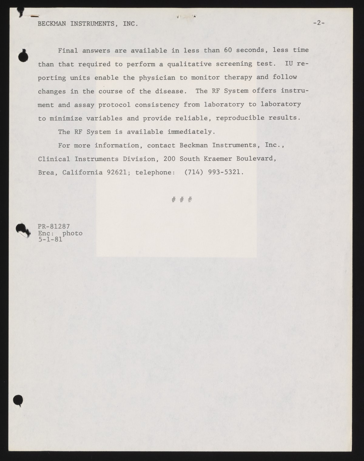 Schneider, Ilene. “Beckman Rheumatoid Factor Assay System Provides Quantitative Measurement,” May 1, 1981. Beckman Historical Collection, Box 58, Folder 69. Science History Institute. Philadelphia. https://digital.sciencehistory.org/works/rv042t55x.