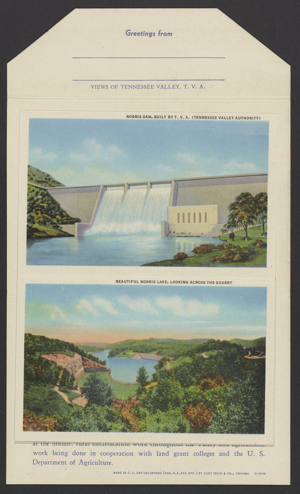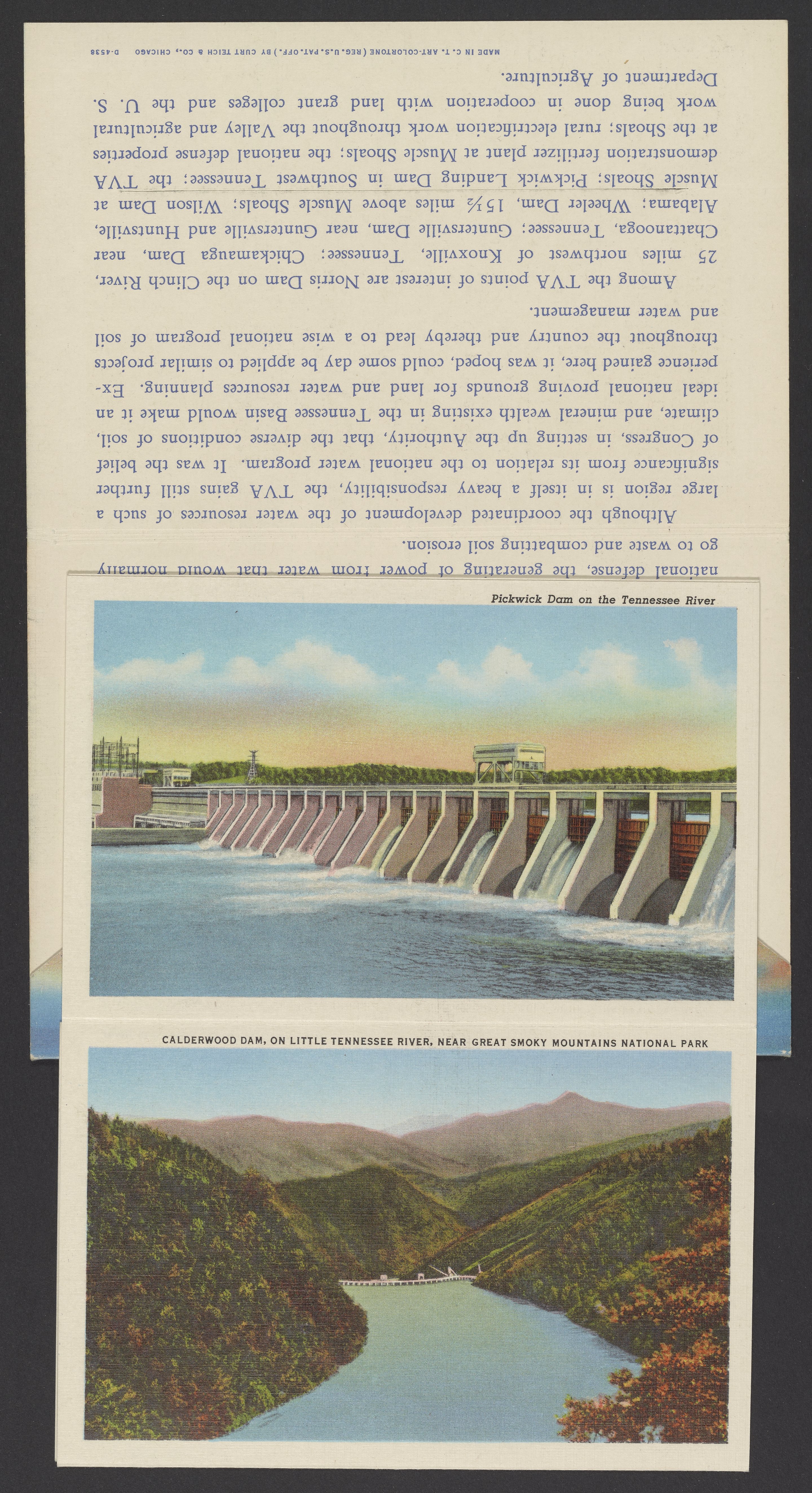 Curt Teich & Co. “Tennessee Valley Authority Postcard Pack.” Chicago, Illinois, n.d. Papers of Georg and Max Bredig, Box 10, Folder 34. Science History Institute. Philadelphia. https://digital.sciencehistory.org/works/rw9pflk.
