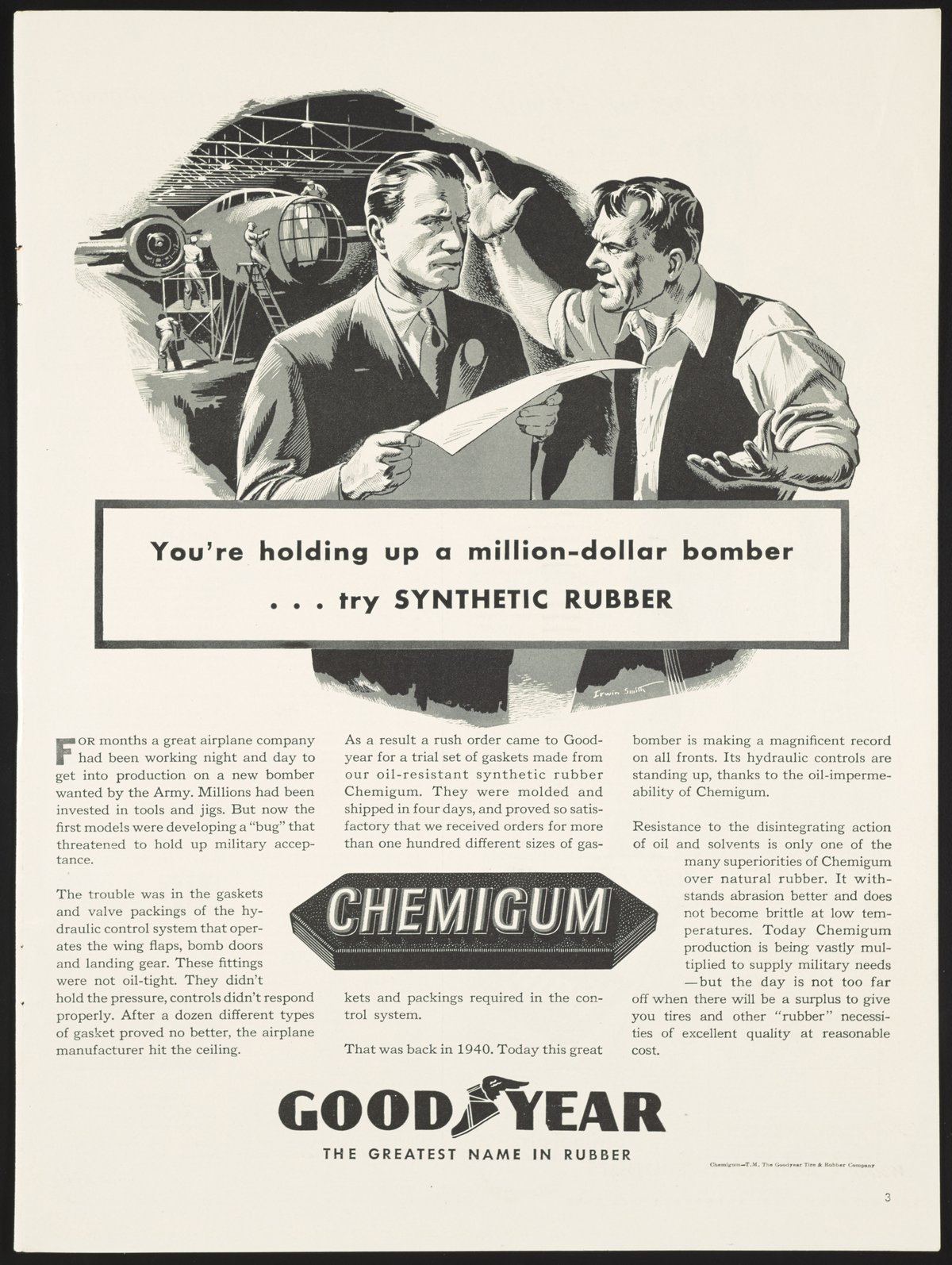 You're holding up a million-dollar bomber... try SYNTHETIC RUBBER