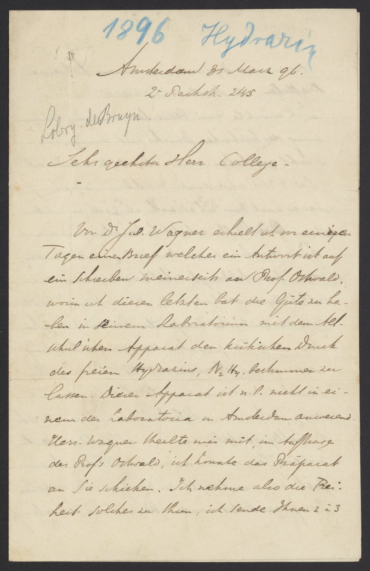 Letter from Cornelis Lobry van Troostenburg de Bruyn to a Colleague, March 1896