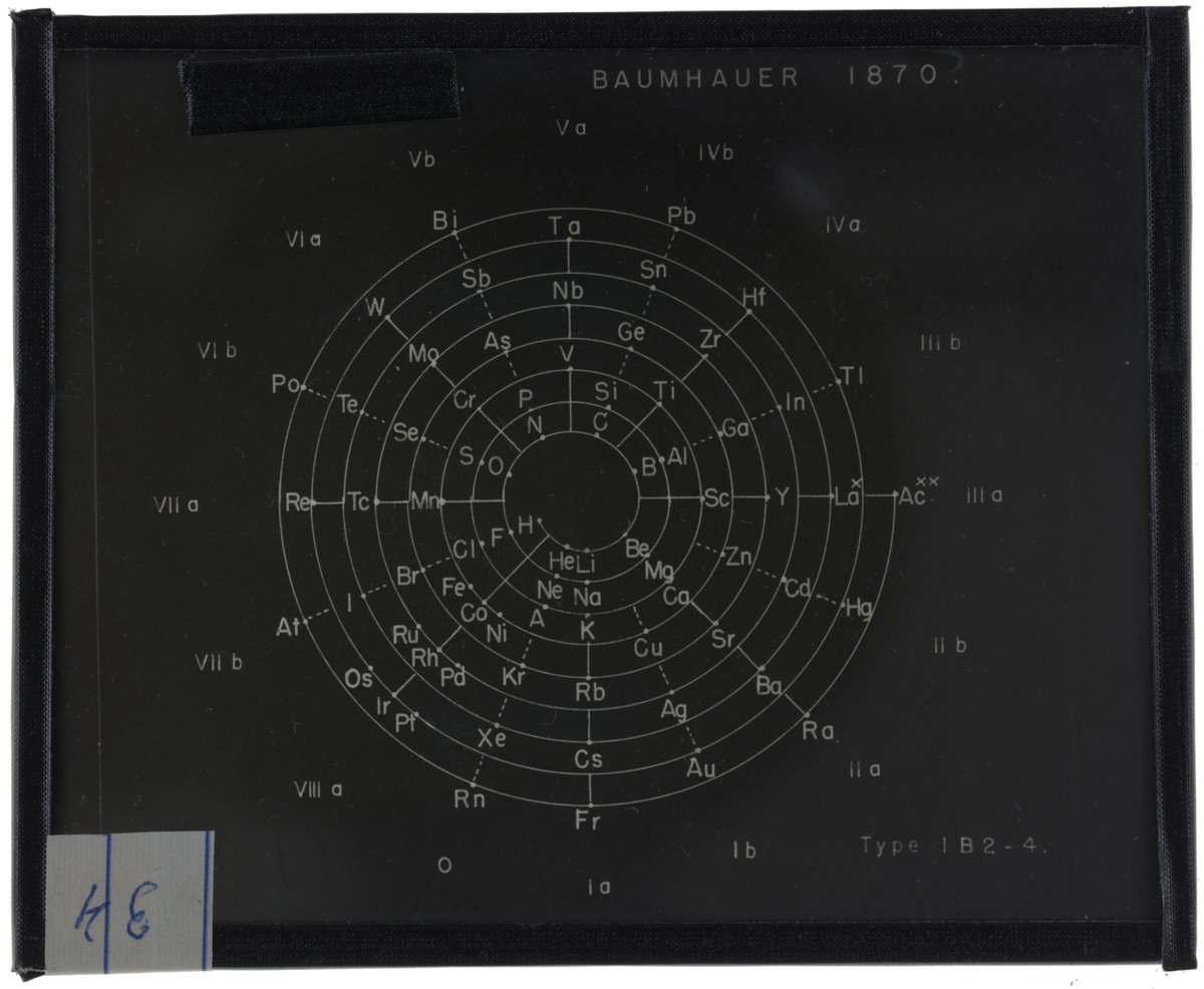 Periodic table in the style of spiral with radii (Heinrich Adolph Baumhauer, 1870)