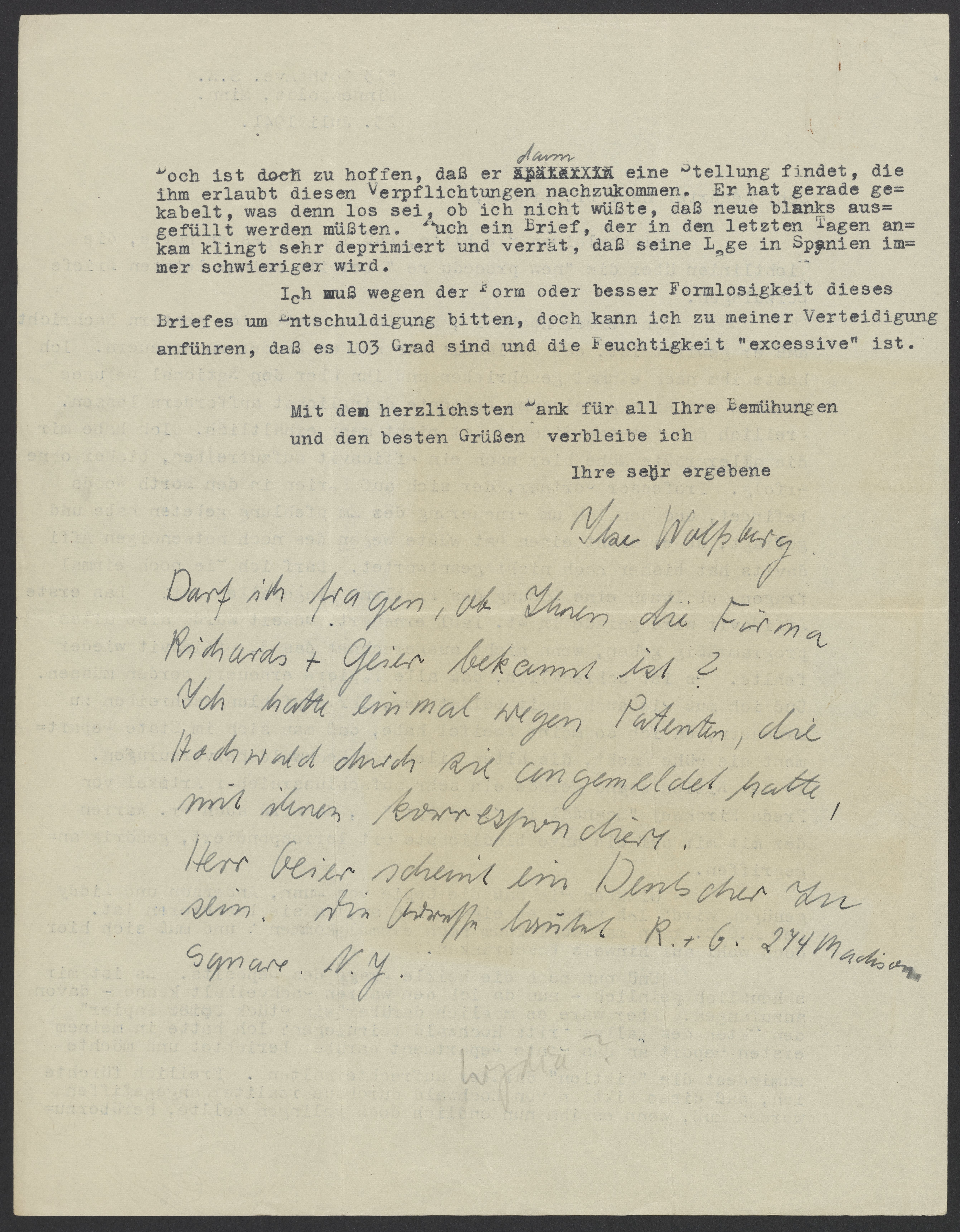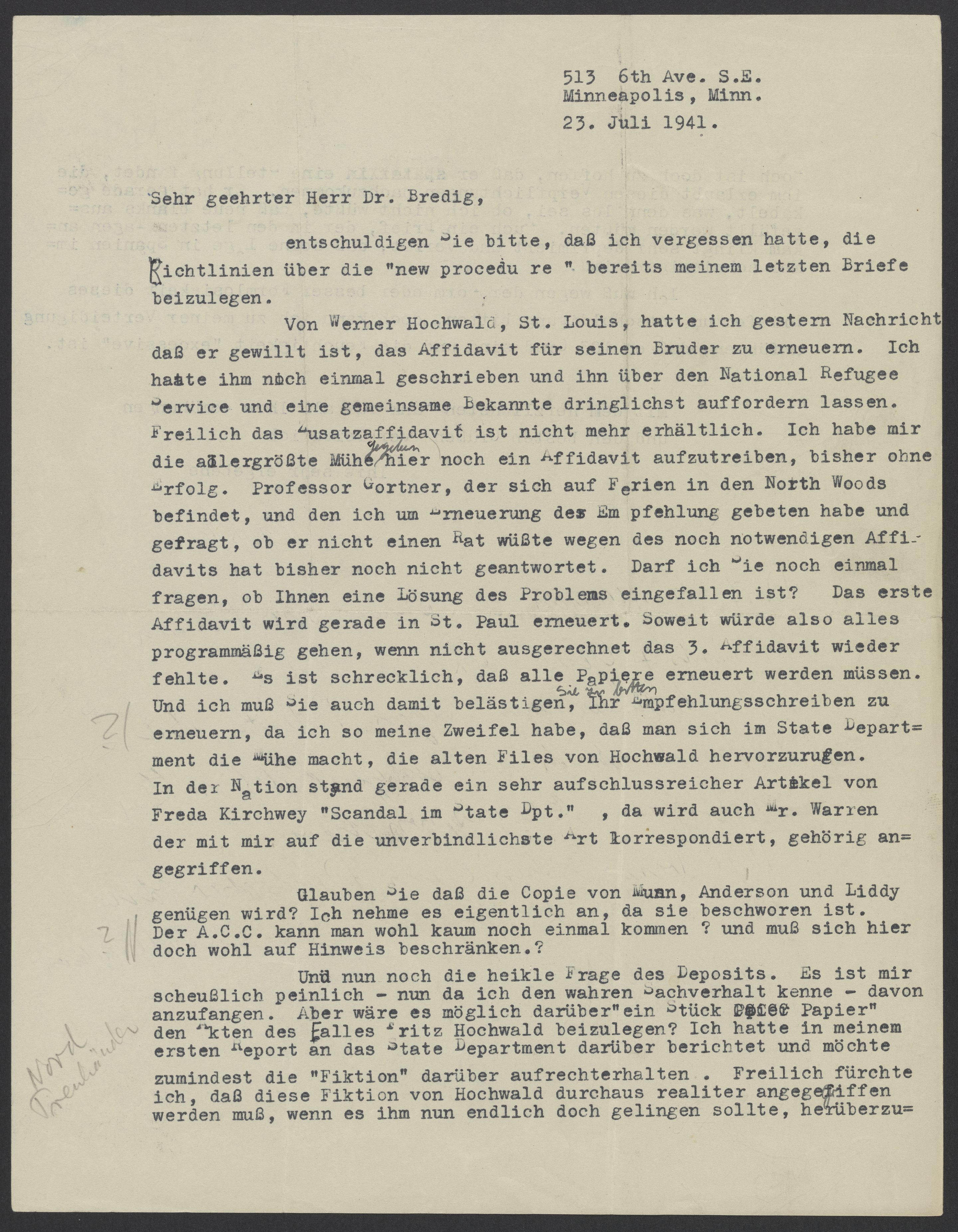 Letter from Ilse Wolfsberg to Max Bredig, July 23, 1941