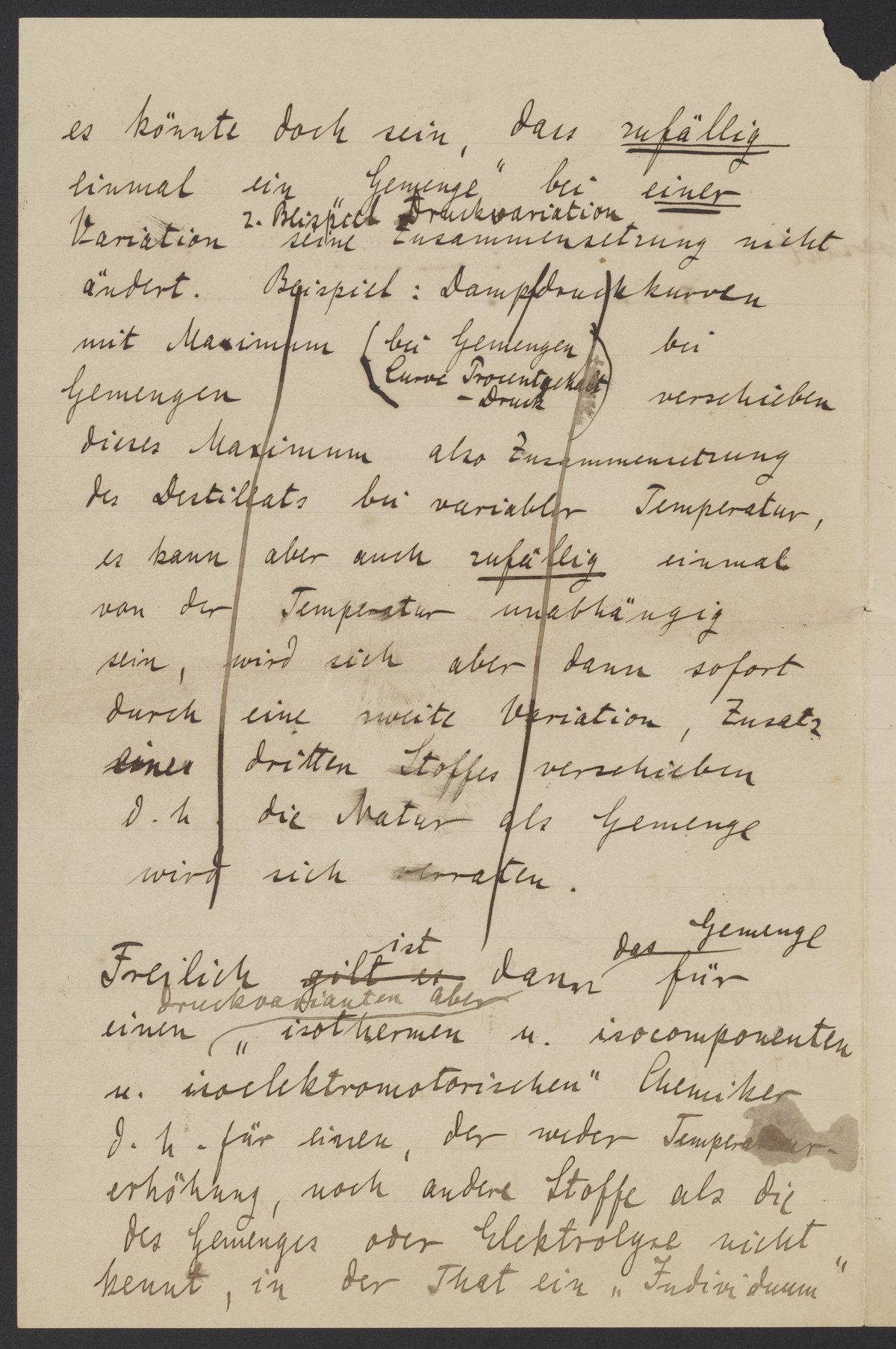Freilich ist dann das Gemenge für einen „isothermen u. isocomponenten u. isoelektromotorrischen“ Chemiker, d.h. für einen, der weder Temperaturerhöhung, noch andere Stoffe als die des Gemenges oder Elektrolyse nicht kennt, in der That ein „Individuum.“