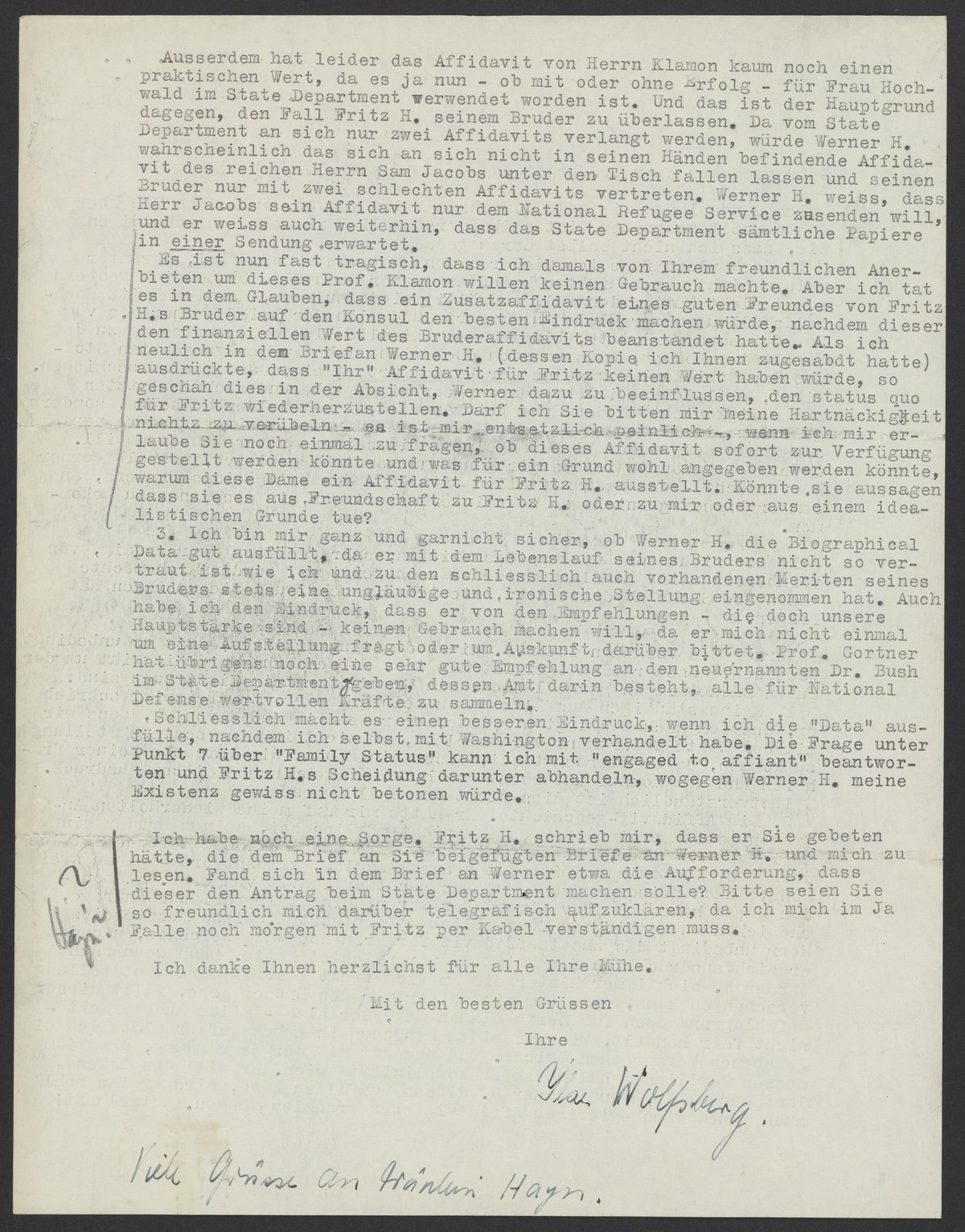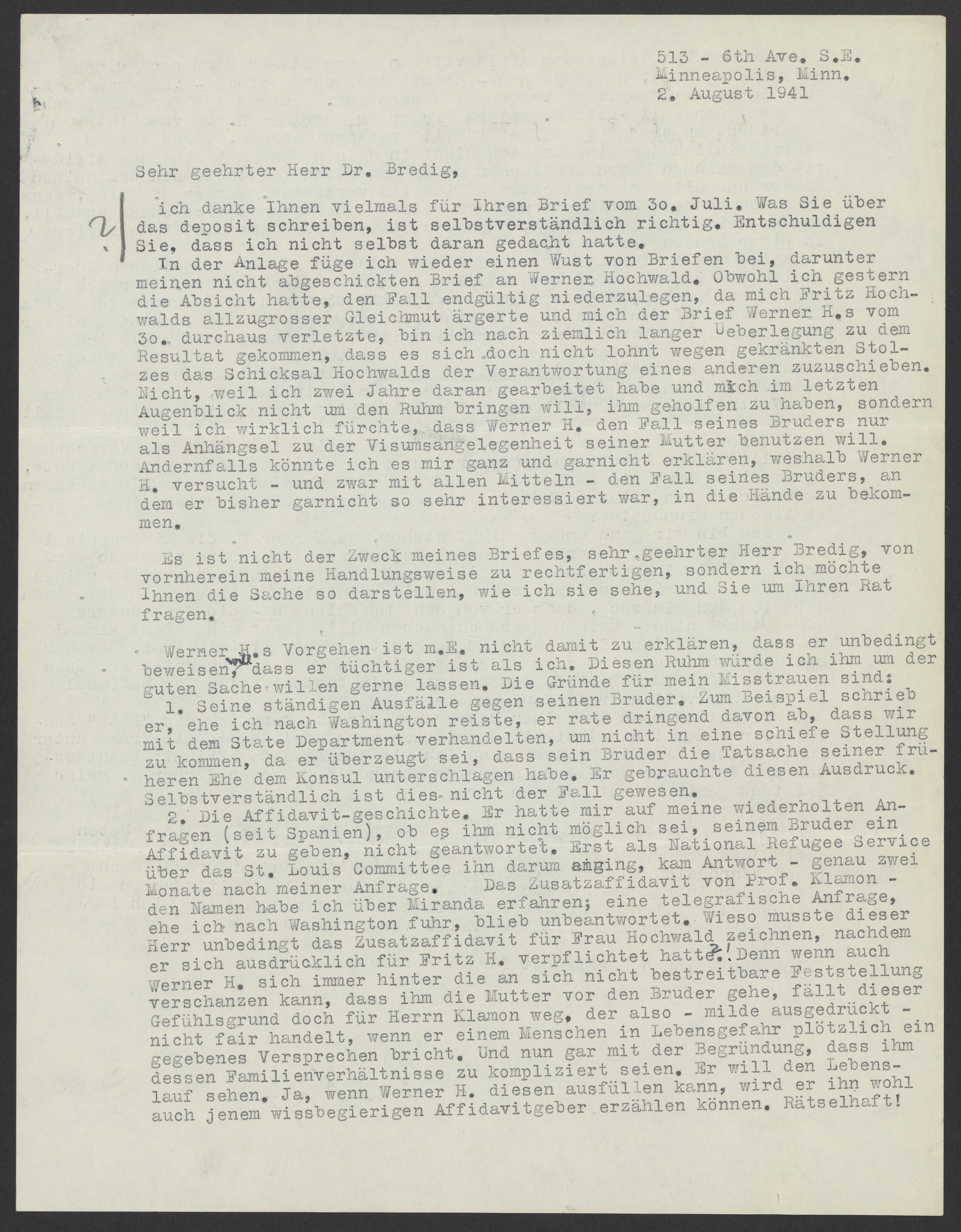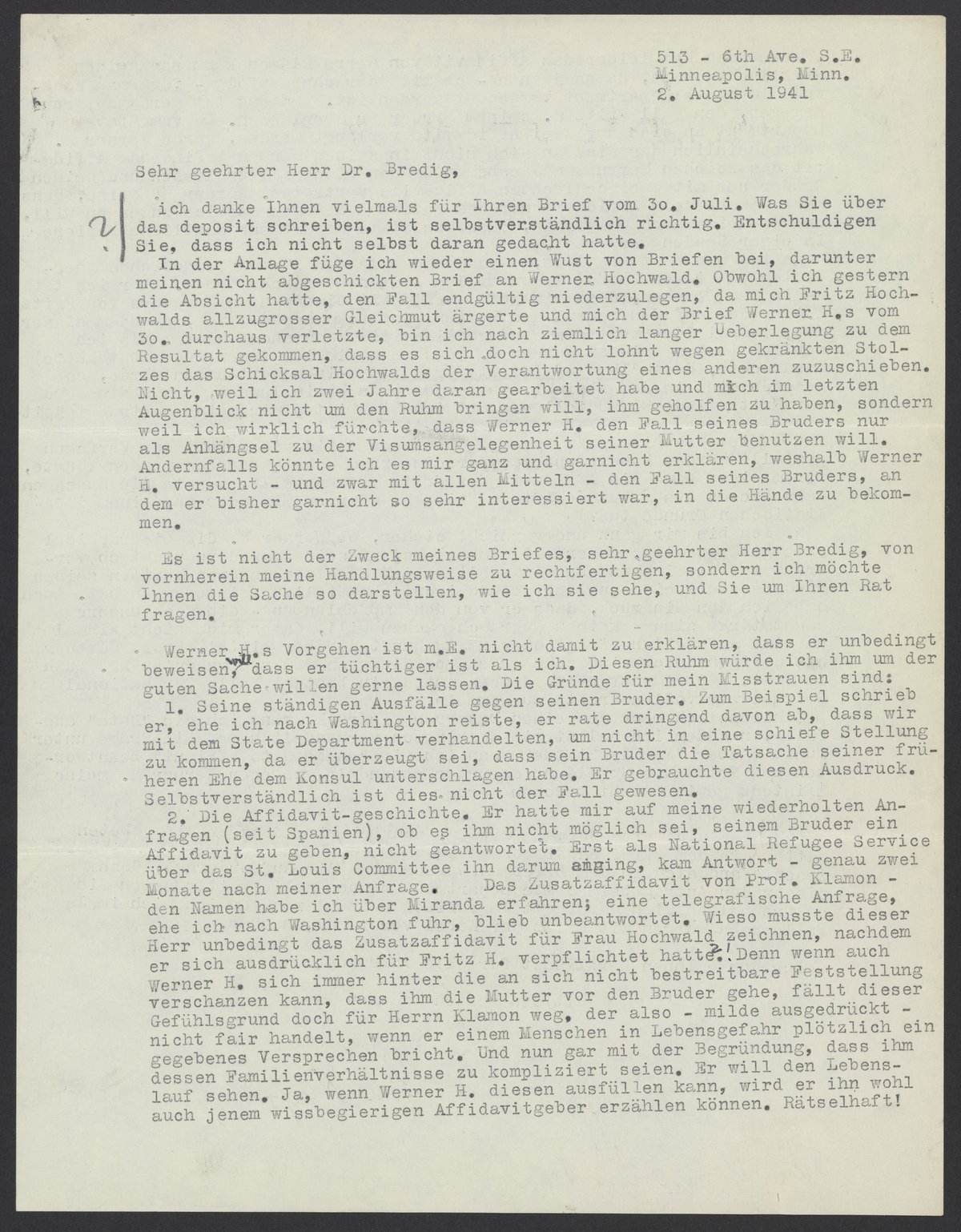 Letter from Ilse Wolfsberg to Max Bredig, August 2, 1941