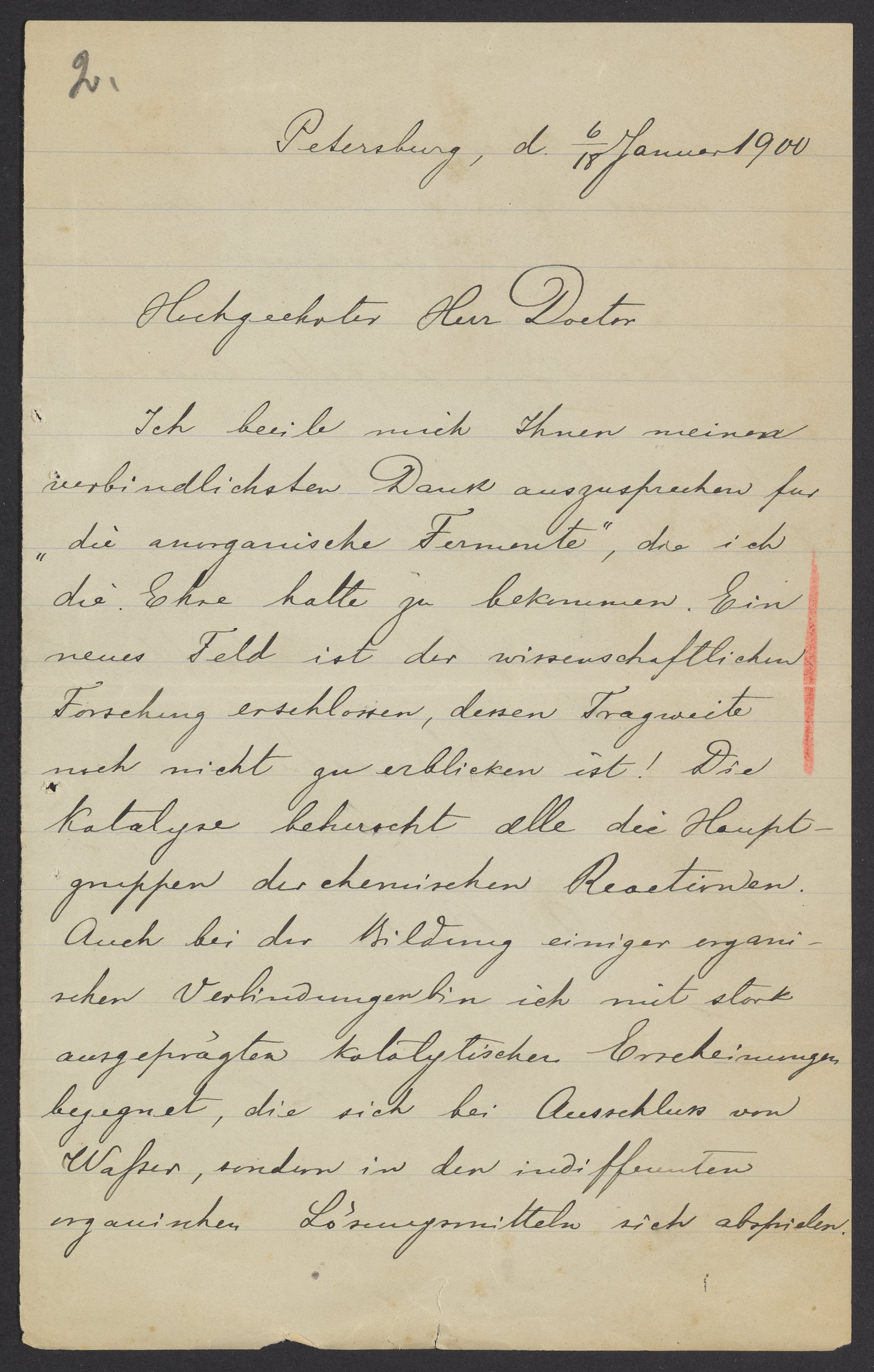 Letter from Nikolai Menshutkin to Georg Bredig, January 1900