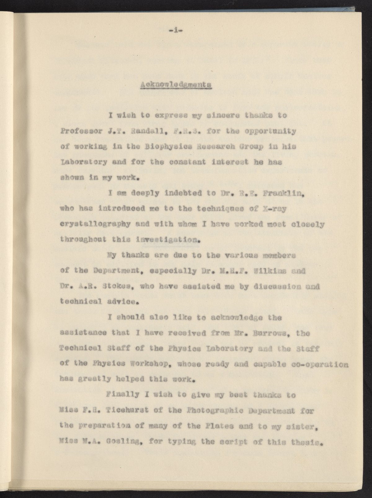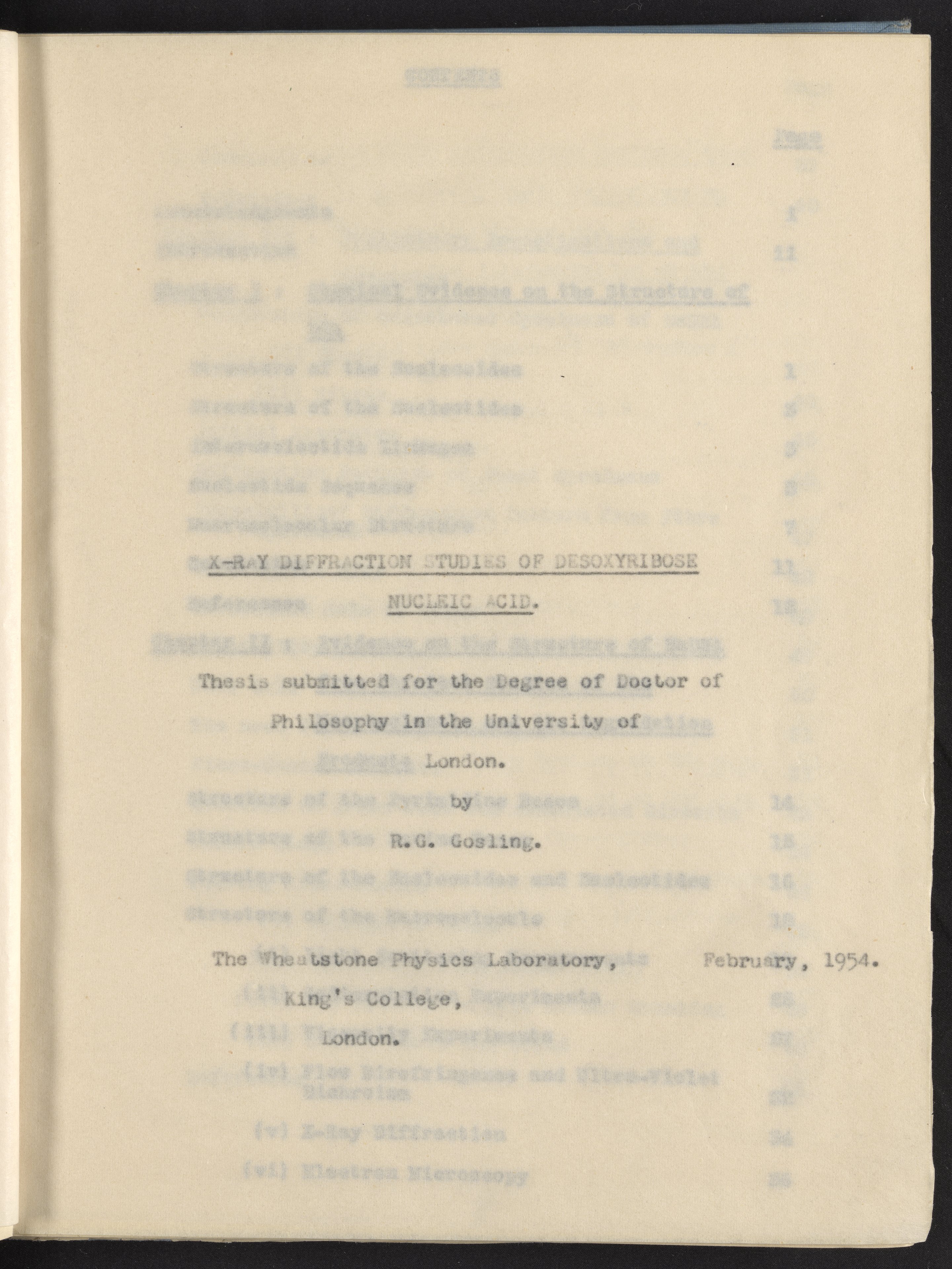 Gosling, R. G. (Raymond George). “X-Ray Diffraction Studies of Desoxyribose Nucleic Acid,” February 1954. History of Molecular Biology Collection, Box 14, Folder 1. Science History Institute. Philadelphia. https://digital.sciencehistory.org/works/s7zendv.