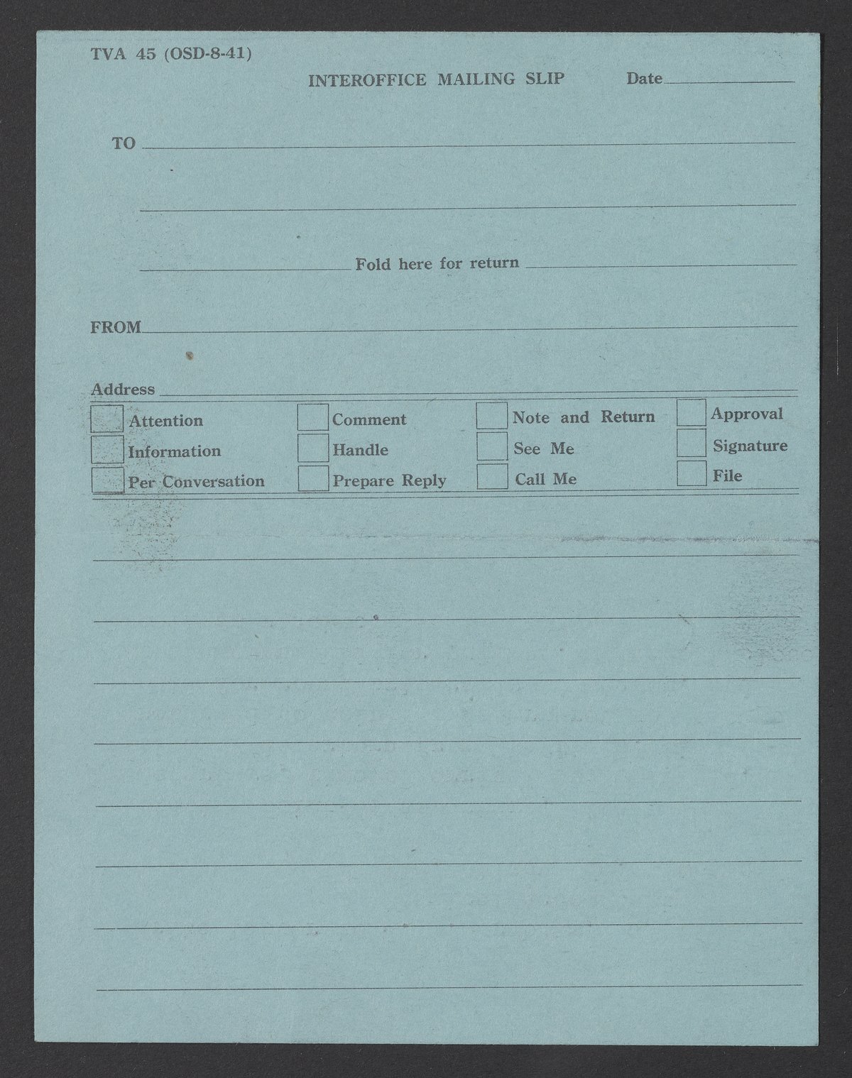 Small JPG1200 x 1511px — 273 KBFull-sized JPG2818 x 3549px — 1.7 MBOriginal fileTIFF — 2818 x 3549px — 28.7 MBMemo, presumably from Max Albert Bredig (1902-1977), about writing a letter to J.E. Brabham from the Tennessee Valley Authority. The memo indicates that the letter should include Bredig's travel information and a receipt.