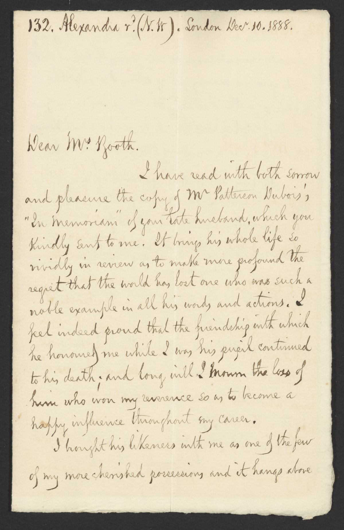 Letter from Campbell Morfit to Margaret M. Booth, December 10, 1888