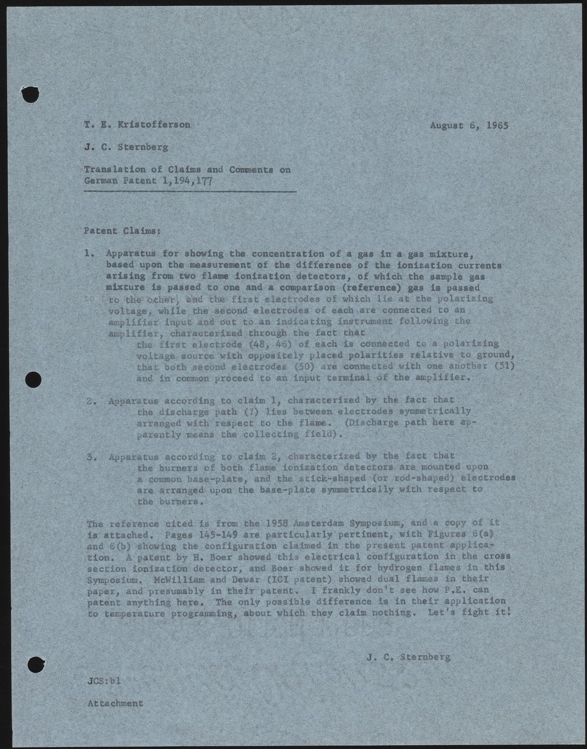 Memo from James C. Sternberg to T. E. Kristofferson