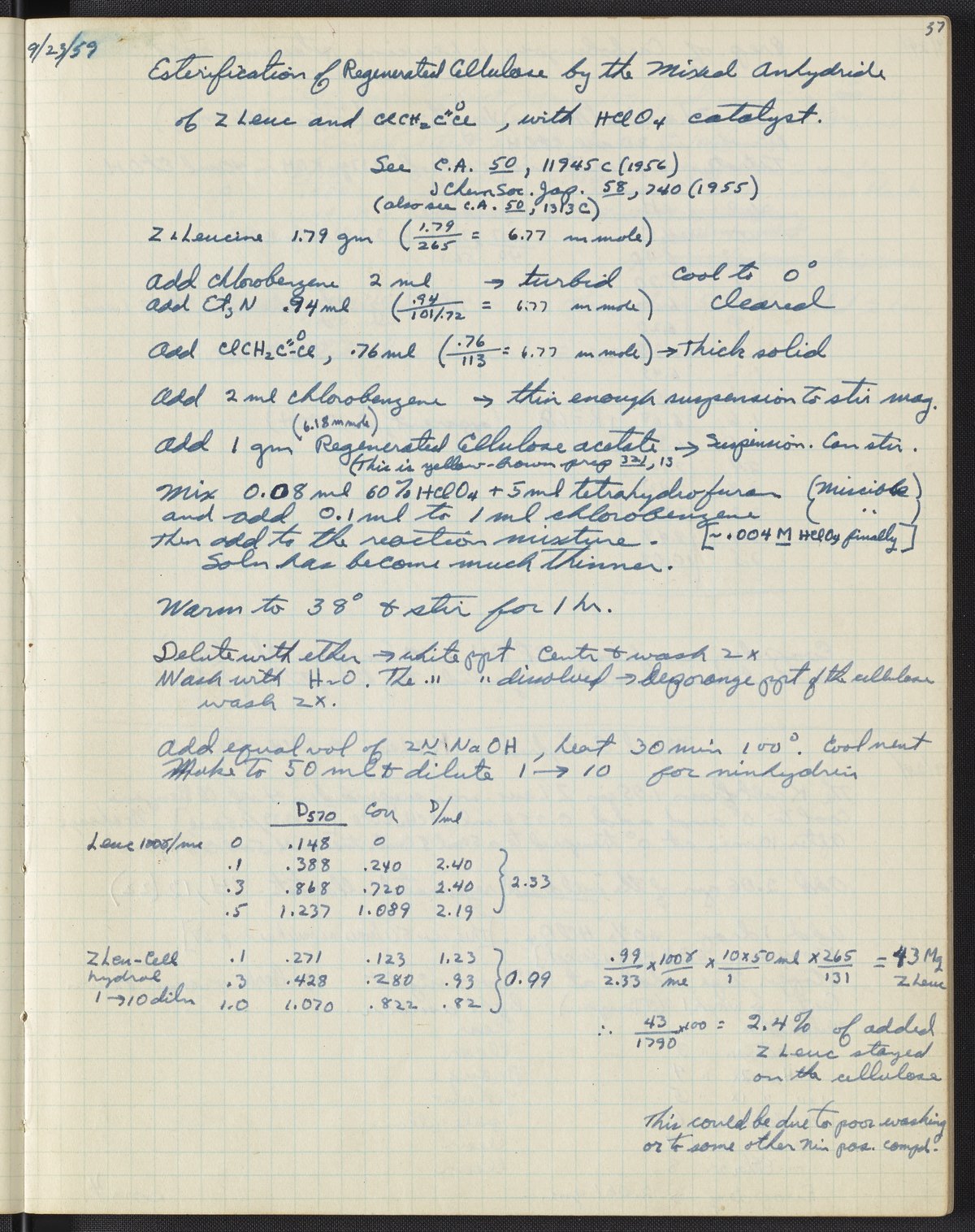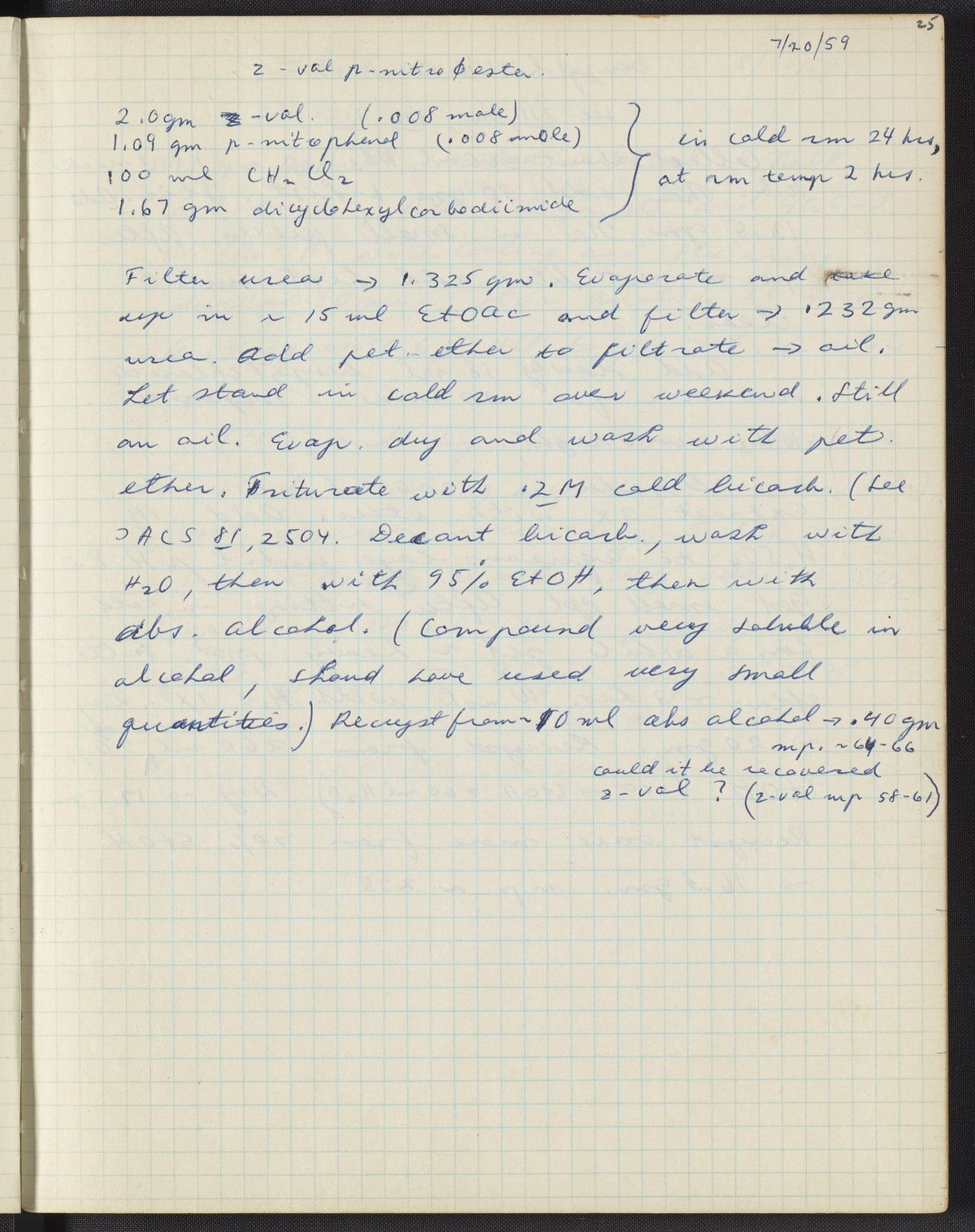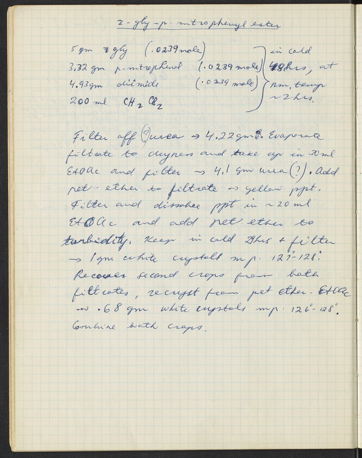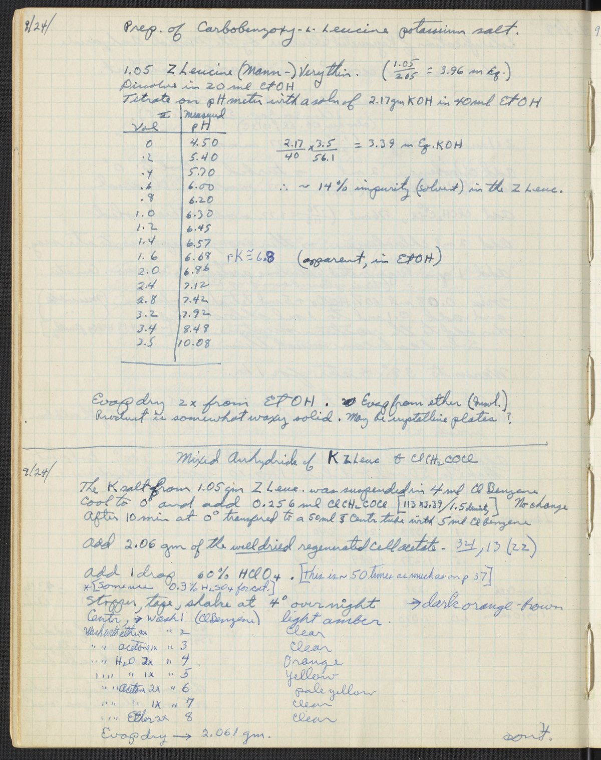 Merrifield, Bruce. “Robert Bruce Merrifield Notebook,” 1959–1960. Science History Institute. Philadelphia. https://digital.sciencehistory.org/works/sb3978325.