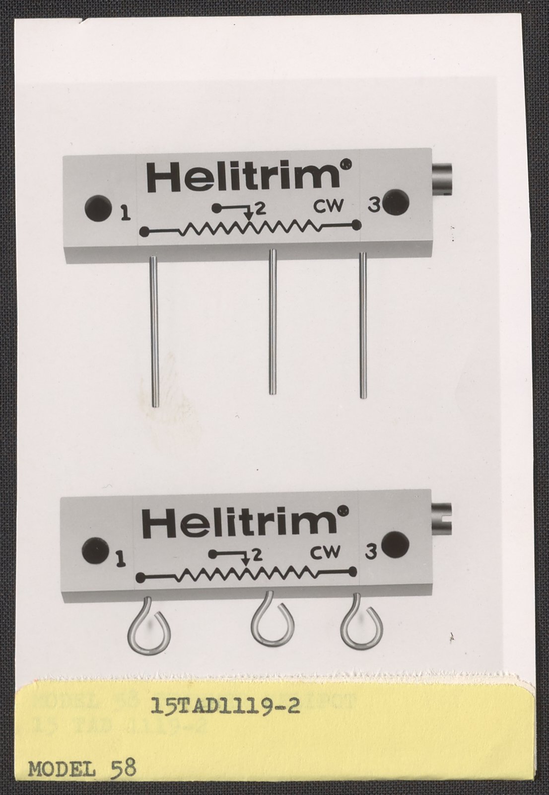 Dietrich, T. A. “Model 58 Helitrim Trimming Potentiometers,” 1950–1969. Beckman Historical Collection, Box 85. Science History Institute. Philadelphia. https://digital.sciencehistory.org/works/sj1392150.
