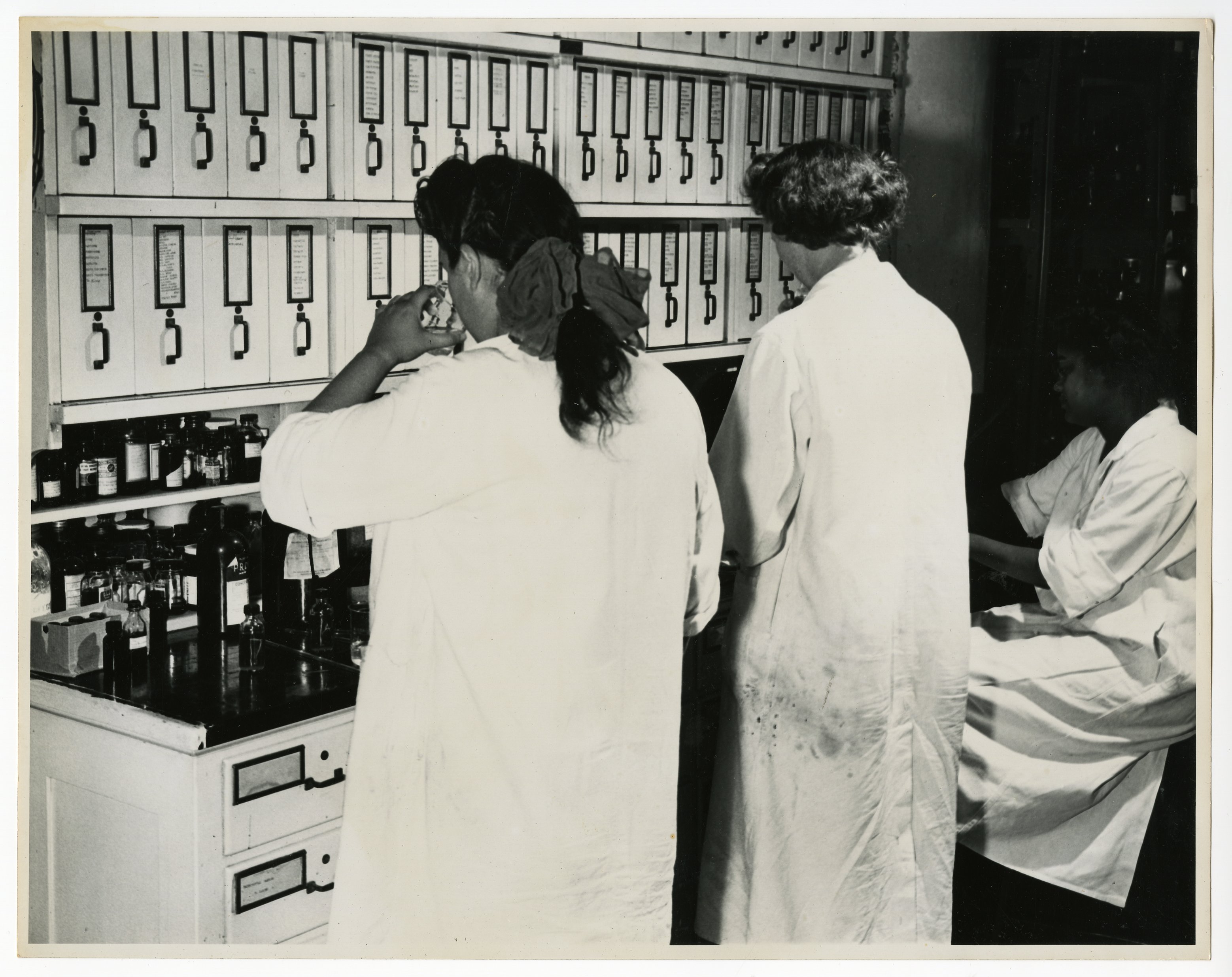 Norda Essential Oil and Chemical Company. “Checking Odor Values,” 1950–1959. Norda Essential Oil and Chemical Company Photograph Collection, Box 1. Science History Institute. Philadelphia. https://digital.sciencehistory.org/works/sn009x76k.