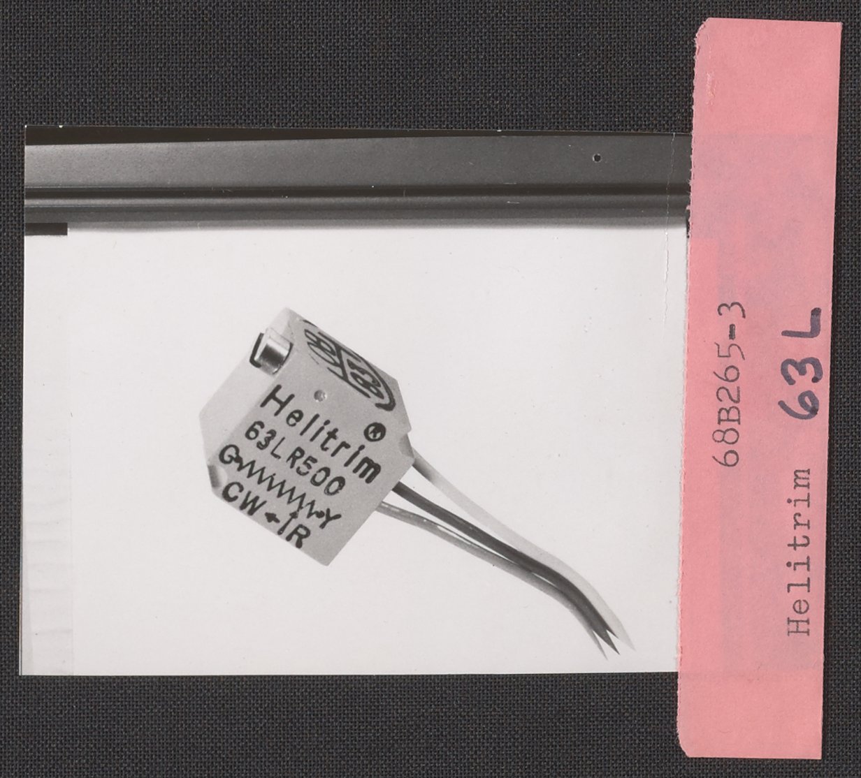 “Helipot Model 63L Helitrim Trimming Potentiometer,” 1950–1969. Beckman Historical Collection, Box 85. Science History Institute. Philadelphia. https://digital.sciencehistory.org/works/sn009z14s.