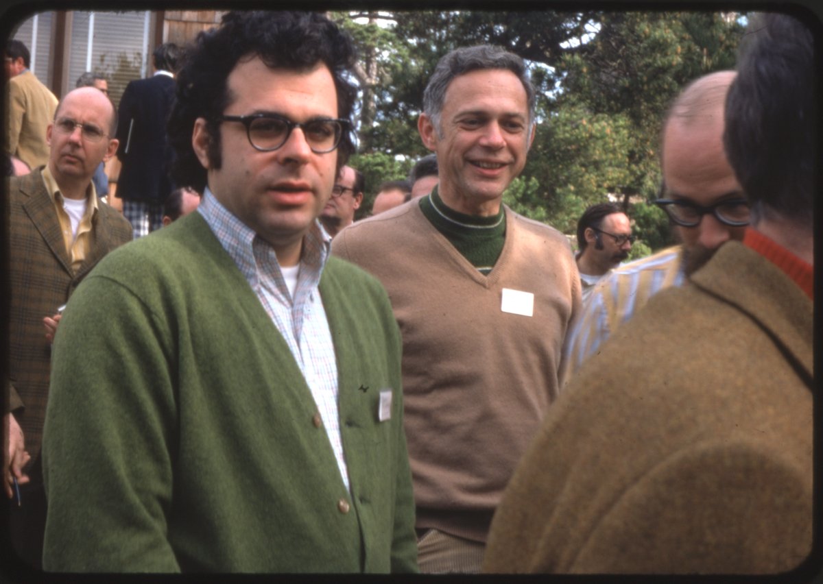 Color transparency of David Botstein (1942-) and Allan M. Campbell (1929-2018) at the 1975 Asilomar Conference.