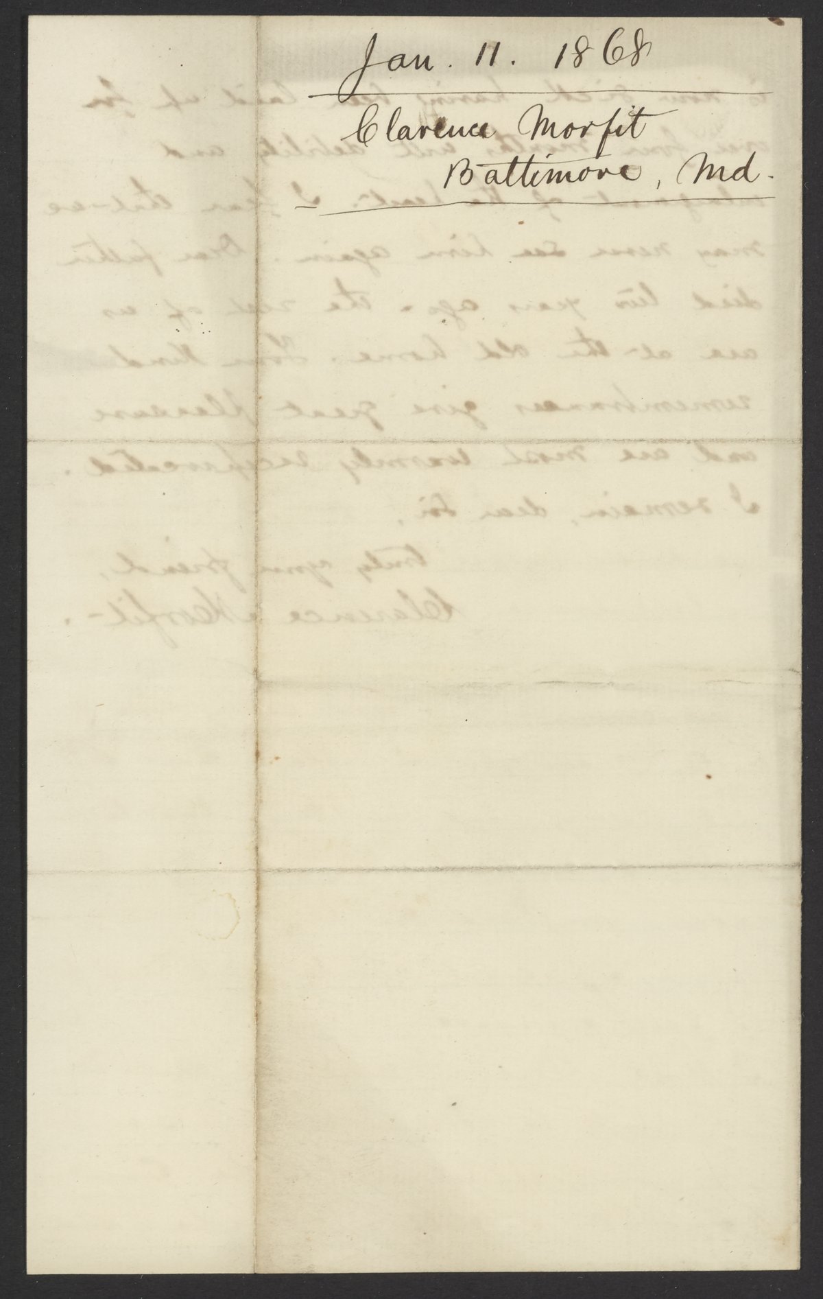 Letter from Clarence Morfit to James Curtis Booth, January 11, 1868
