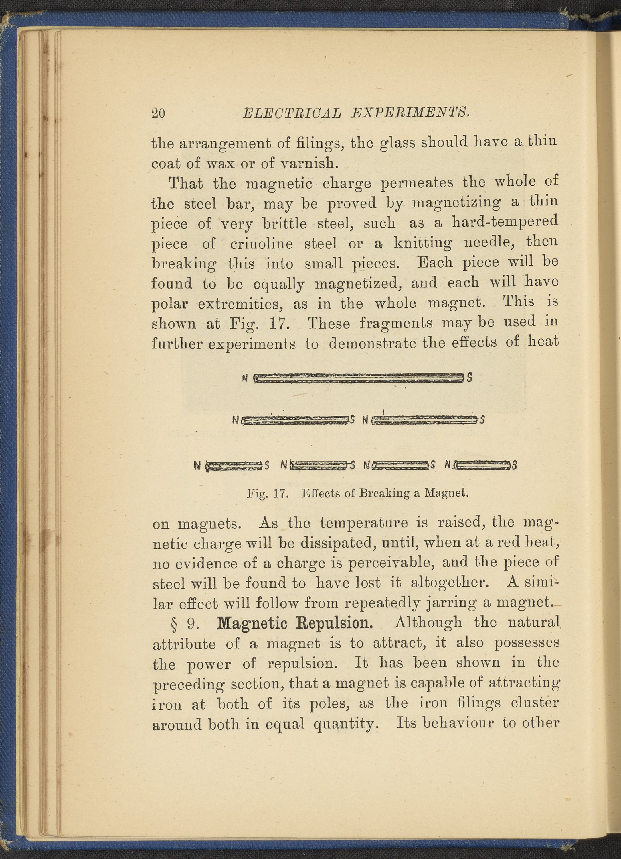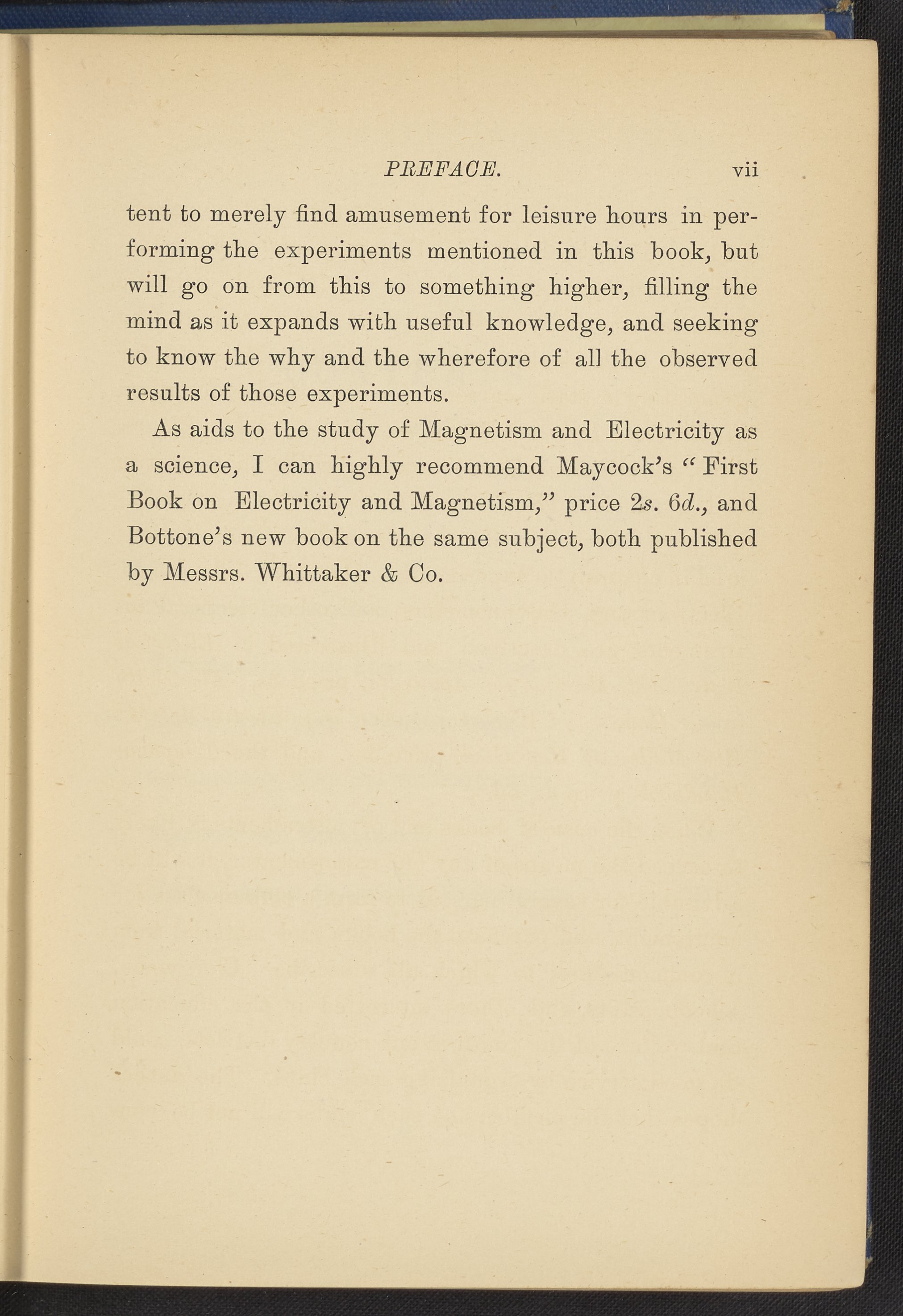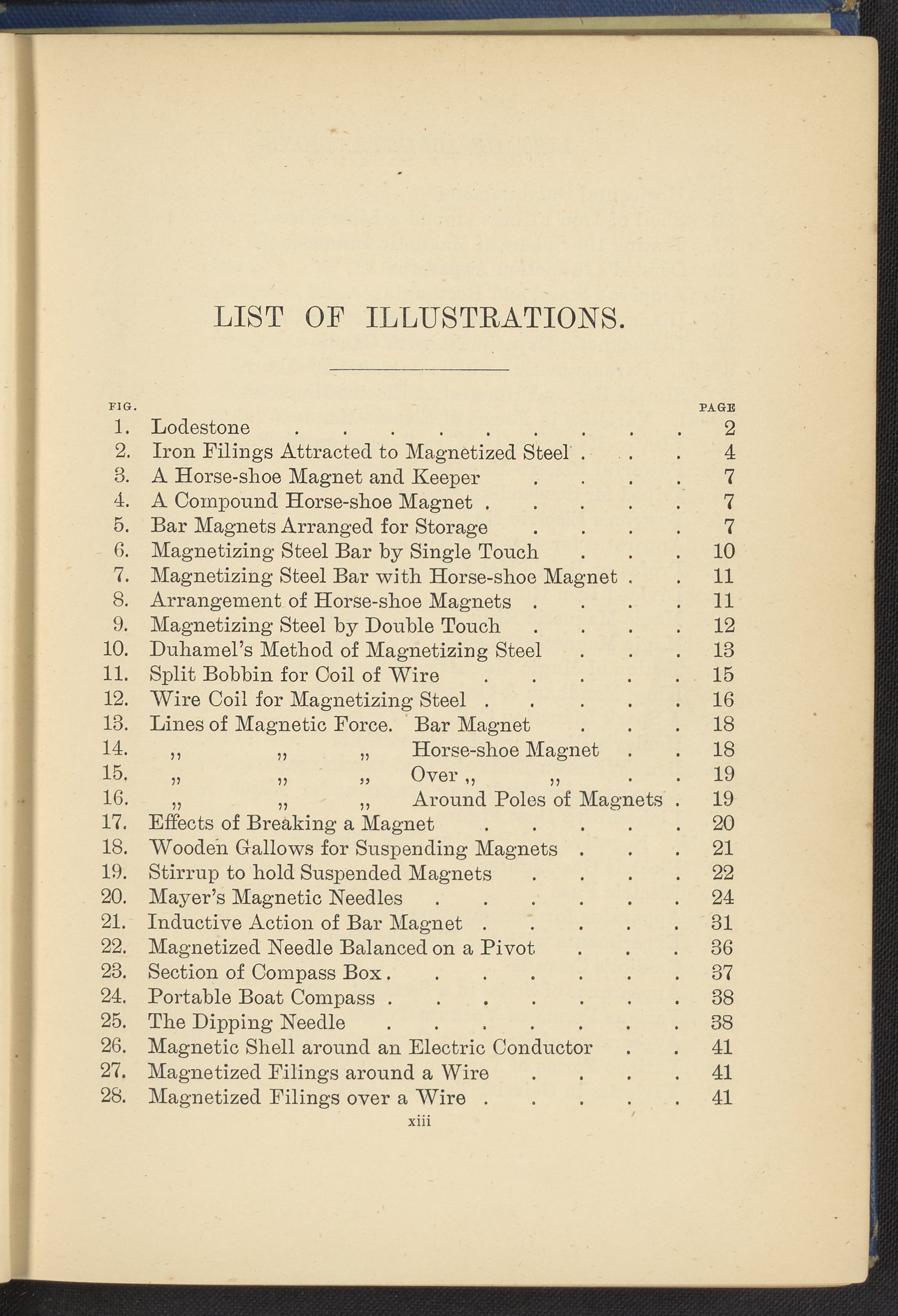 Small JPG1200 x 1571px — 494 KBFull-sized JPG2284 x 2991px — 1.5 MBOriginal fileTIFF — 2284 x 2991px — 19.6 MBWritten to show how electrical apparatus can be assembled at little cost for engaging instruction of scientifically-curious youth, this work includes descriptions of simple experiments that demonstrate elementary concepts of magnetism and electricity. Work is thoroughly illustrated and digitized in its entirety.