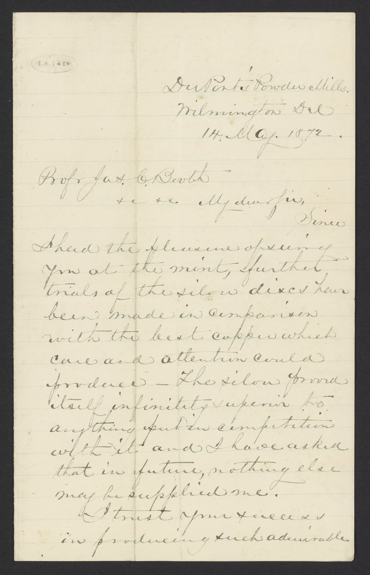 Letter from Lieut. Com'dr J. D. Marvin to James Curtis Booth, May 14, 1872