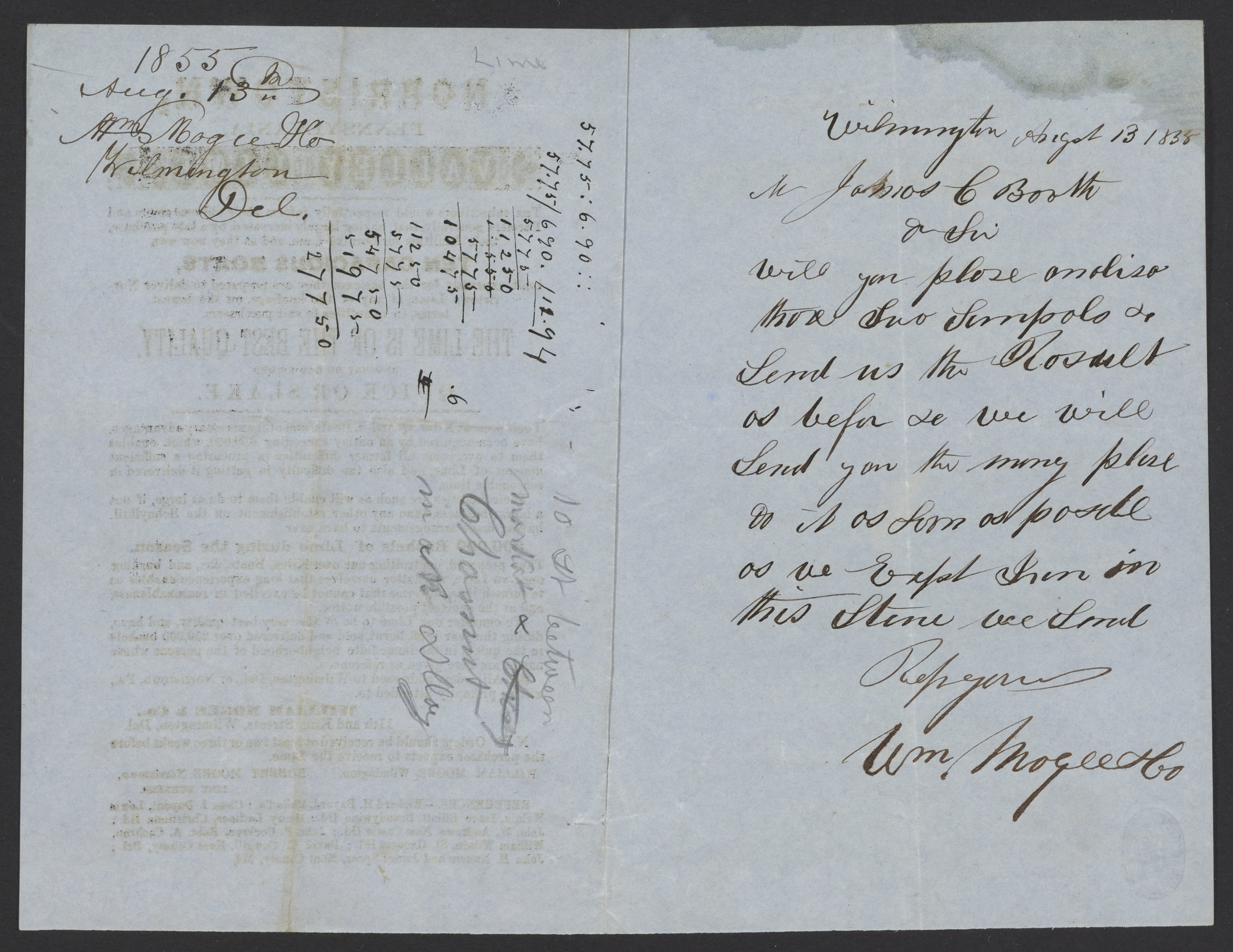 Letter from William Mogee and Co. to James Curtis Booth, August 1855